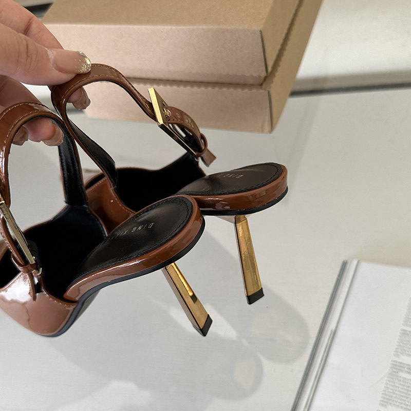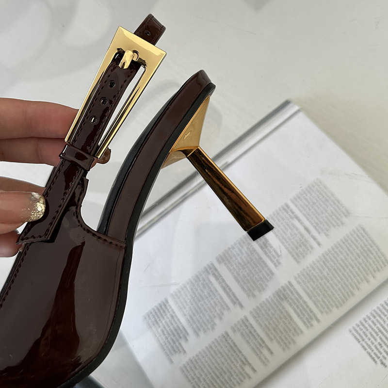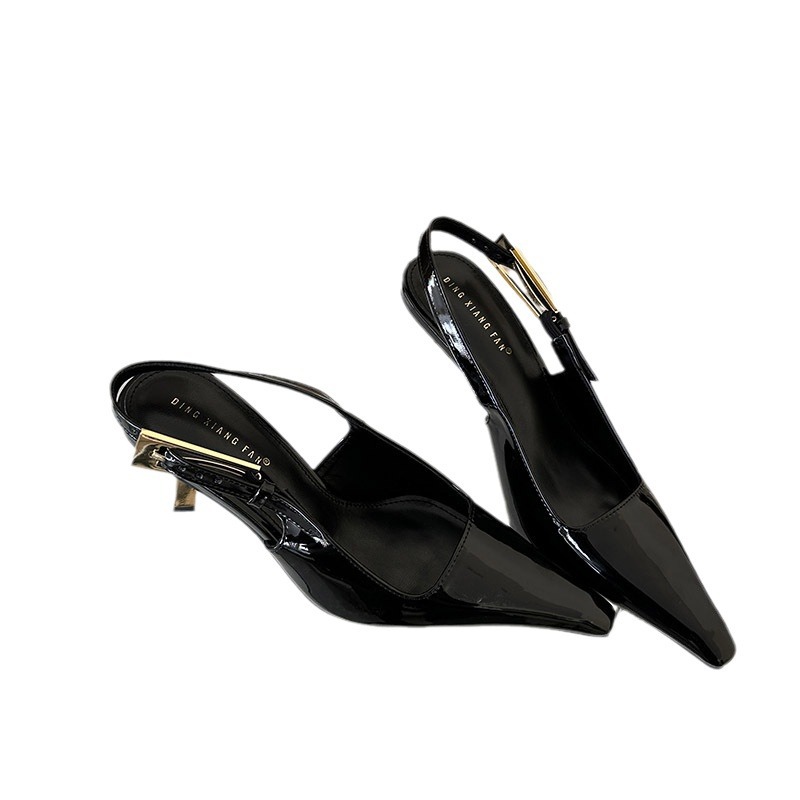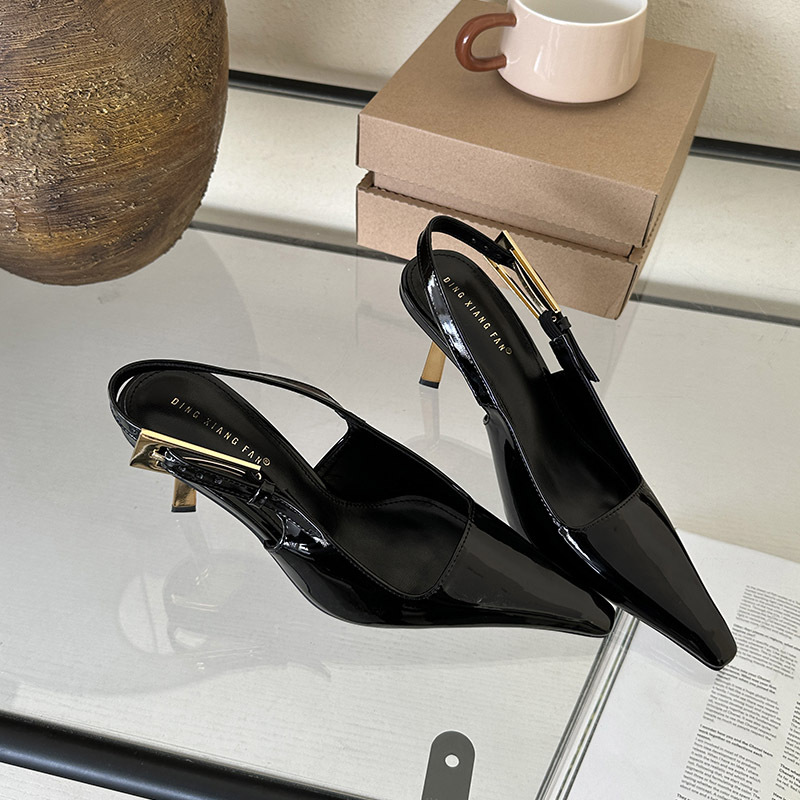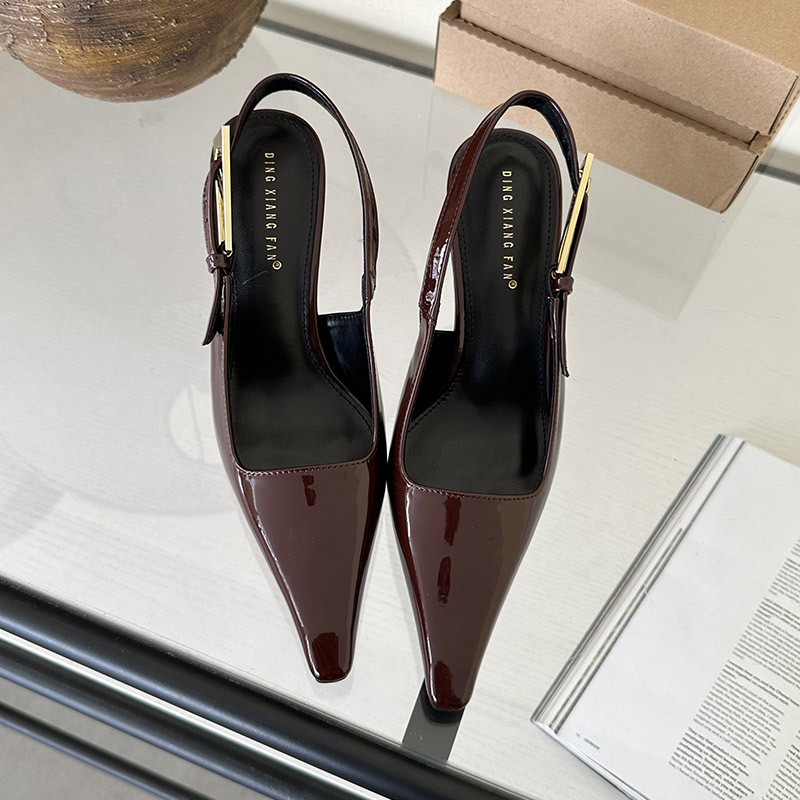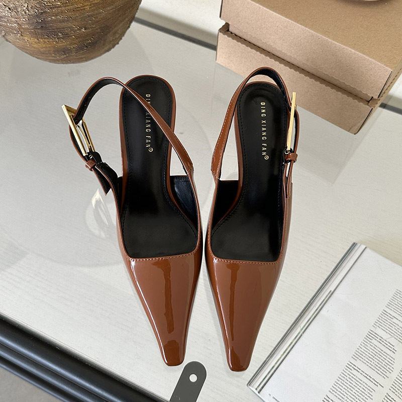 여성용 하이힐 2024 세련된 새 버클 얕은 입 단층 신발 뾰족한 발가락 슬립 온 하이힐 샌들스토어 가기