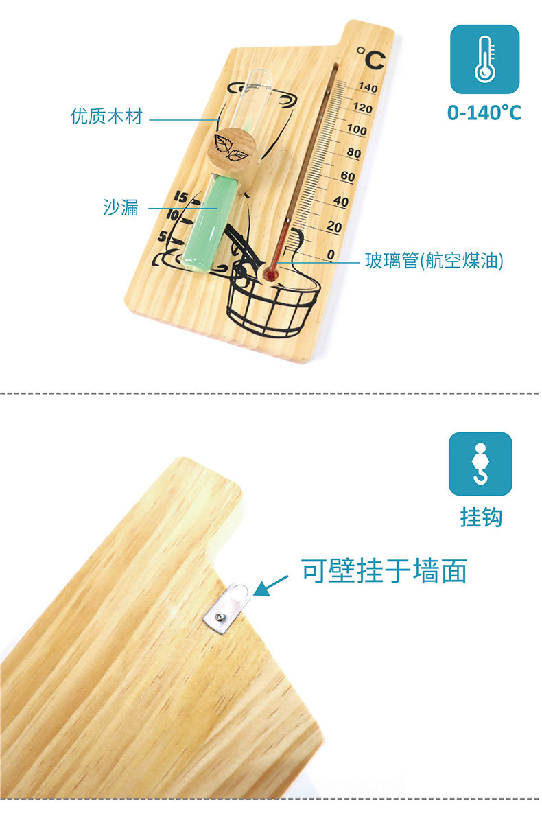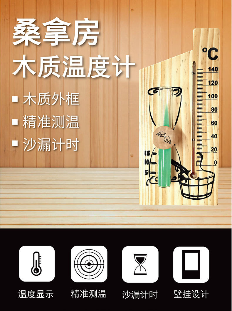 Kaitai 나무 사우나 칸 스팀 룸 벽걸이 온도계 가정용 실내 모래 시계 타이머 온도계스토어 가기