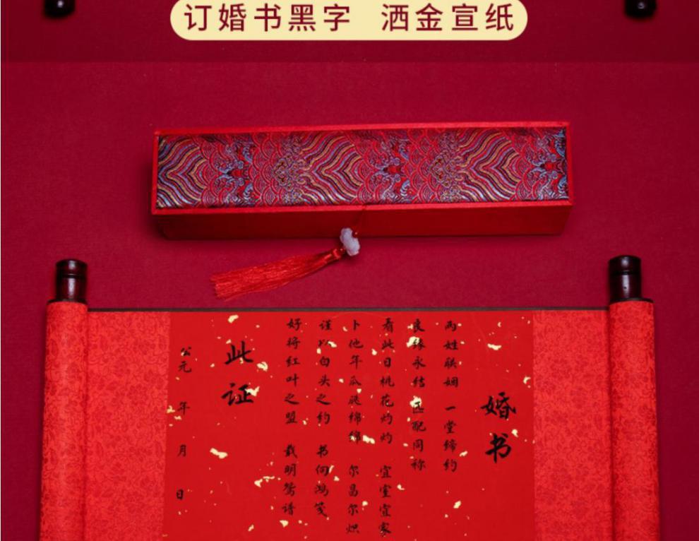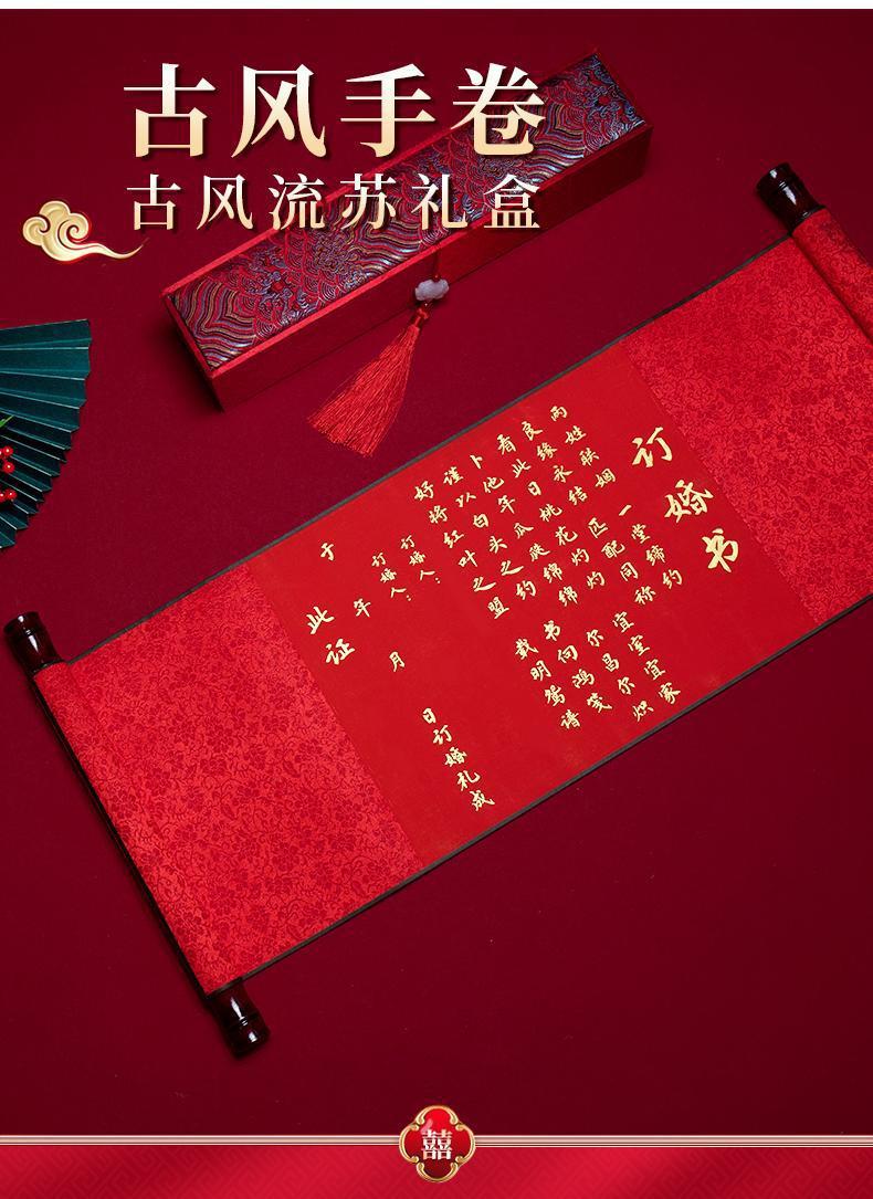 고대 스타일 약혼 도서 중국 스타일 결혼식 편지 배달 날 편지 약속 편지 중국 스타일 빈 필기 약혼 스크롤 약혼 용품스토어 가기