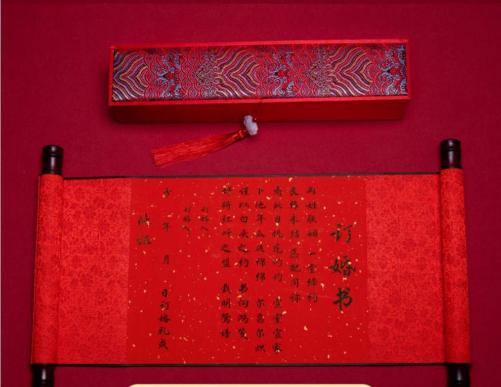 고대 스타일 약혼 도서 중국 스타일 결혼식 편지 배달 날 편지 약속 편지 중국 스타일 빈 필기 약혼 스크롤 약혼 용품