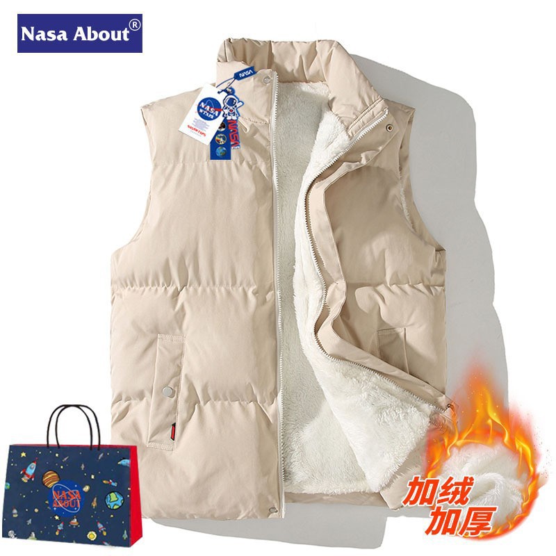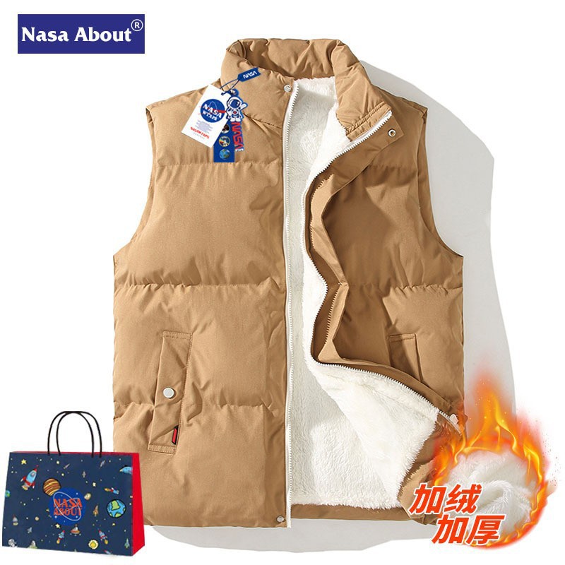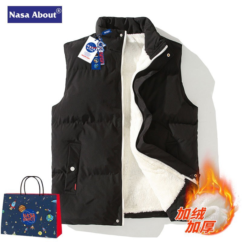 NASA, 플래그십 스토어 스탠드 칼라 람스울 코튼 조끼 남성과 여성의 가을과 겨울 따뜻한 민소매 면화 코트 남성 양복 조끼스토어 가기