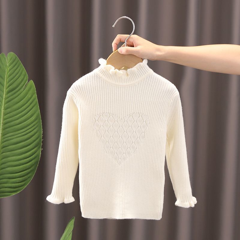 [재고] 여자 바닥 셔츠 아기 흰색 반 터틀넥 스웨터 어린이 블랙 스트레치 스웨터 탑 가을