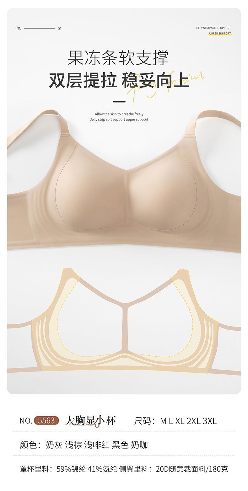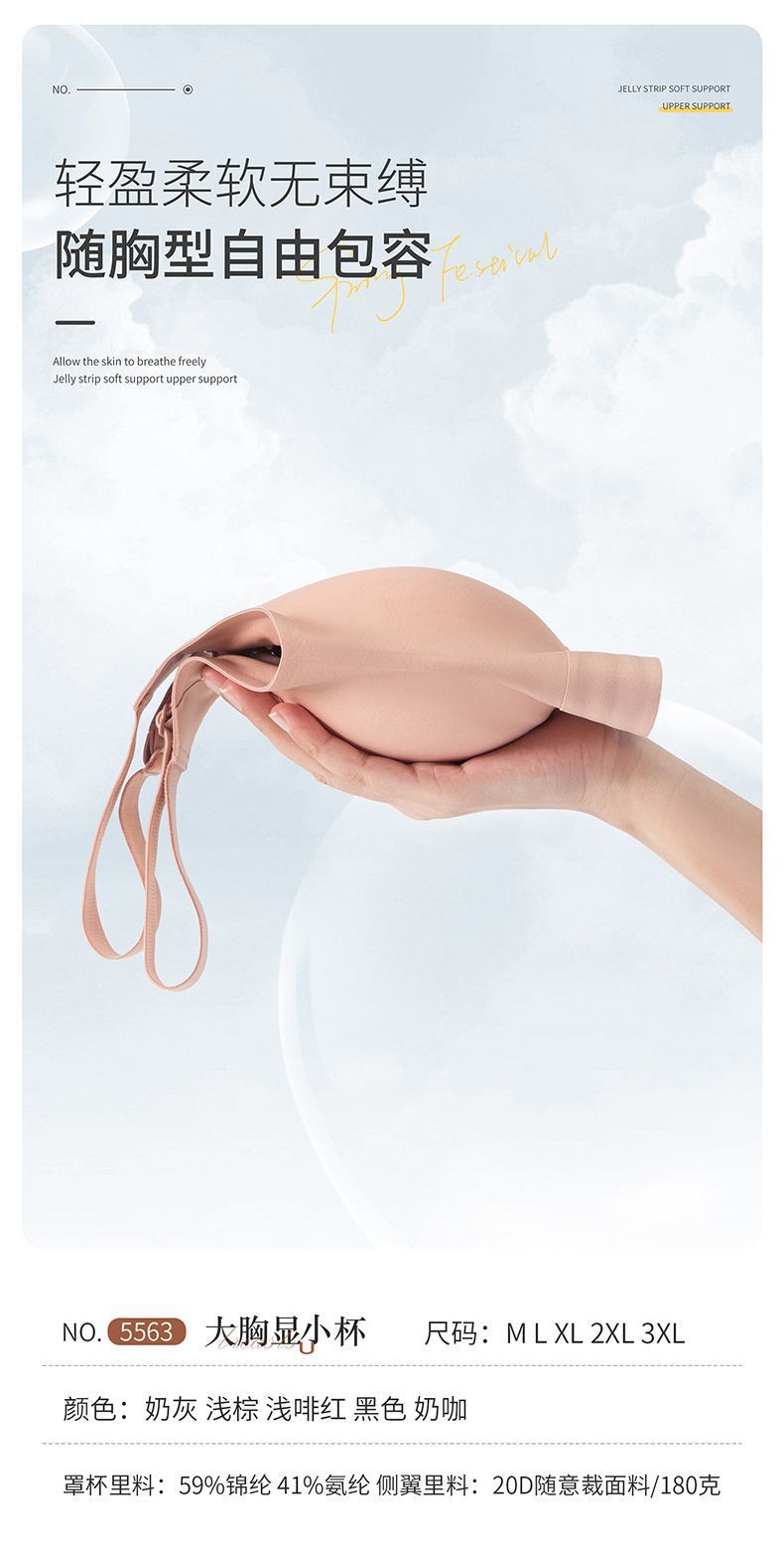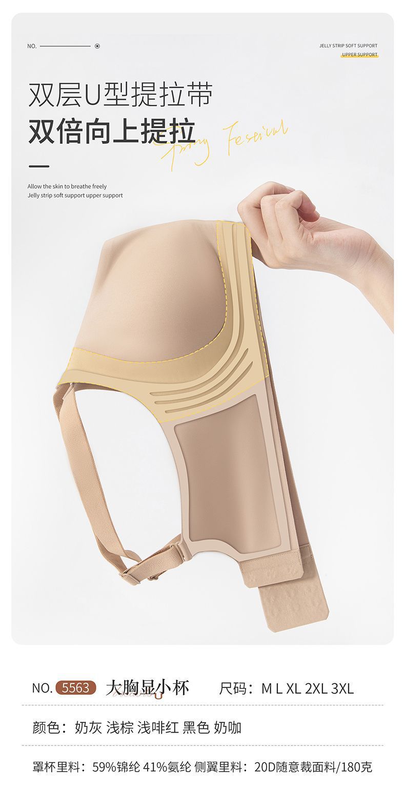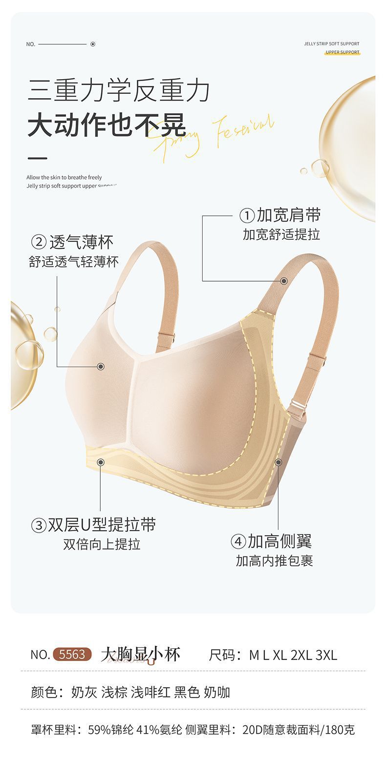 새로운 원활한 속옷 여성의 얇은 큰 가슴 작은 젤리 부드러운 지원 제로-센스 피부 친화적 인 무선 사이드 브라