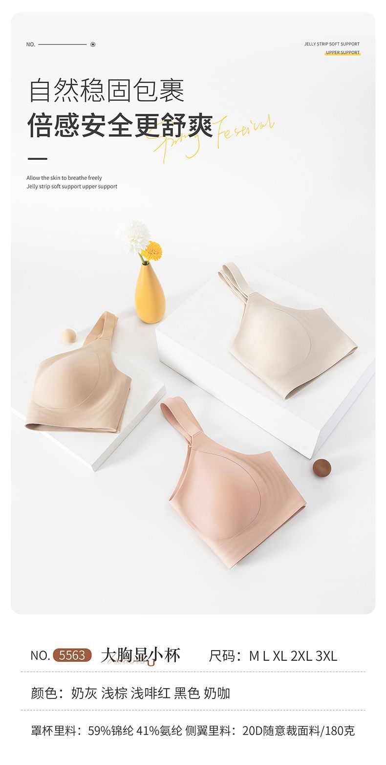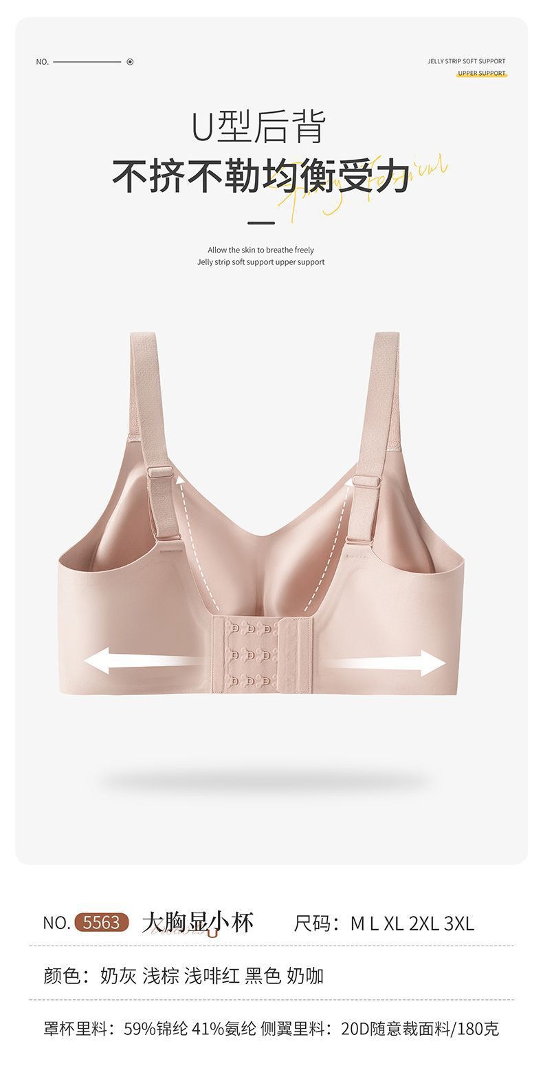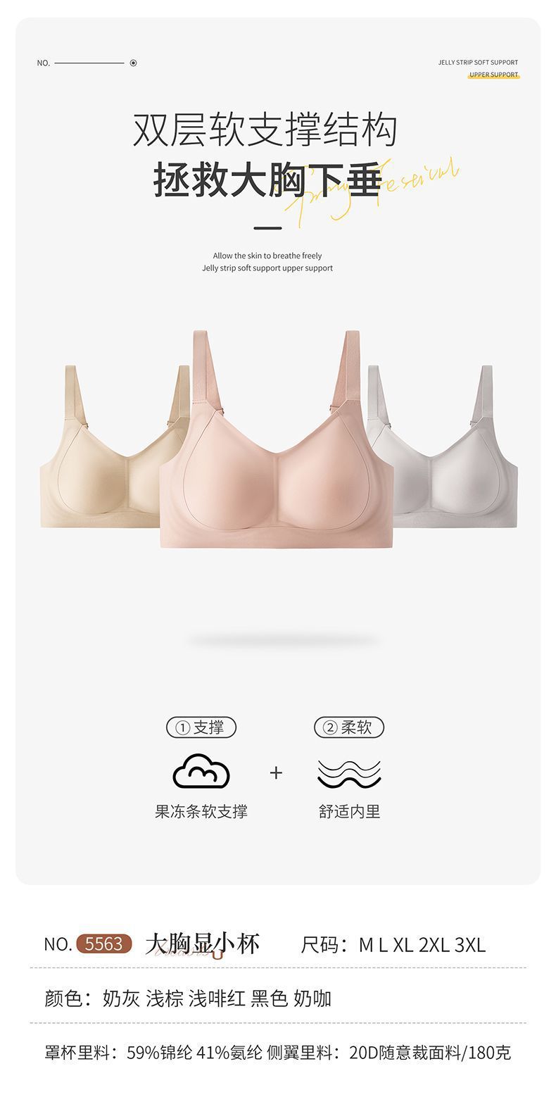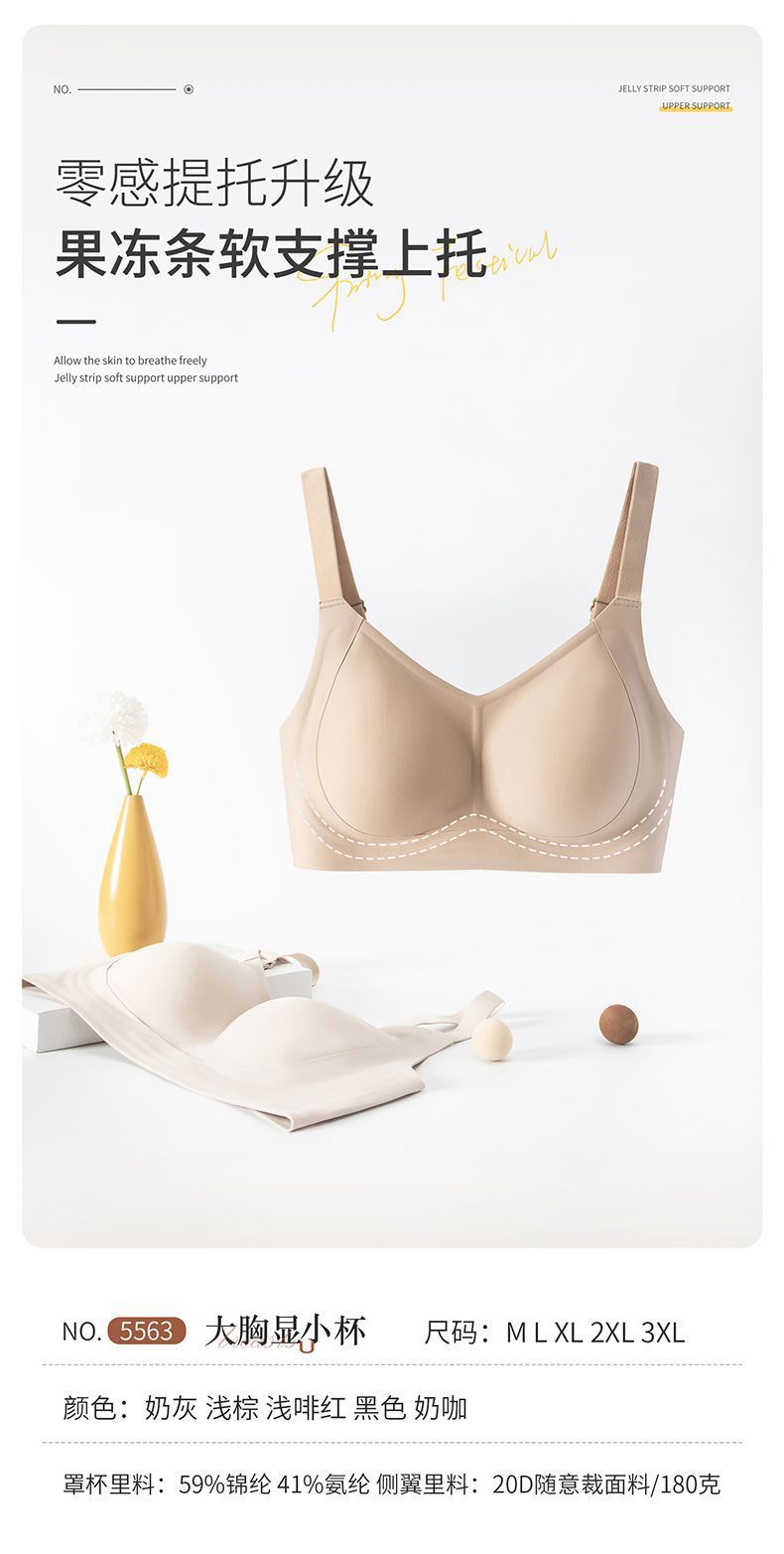 새로운 원활한 속옷 여성의 얇은 큰 가슴 작은 젤리 부드러운 지원 제로-센스 피부 친화적 인 무선 사이드 브라