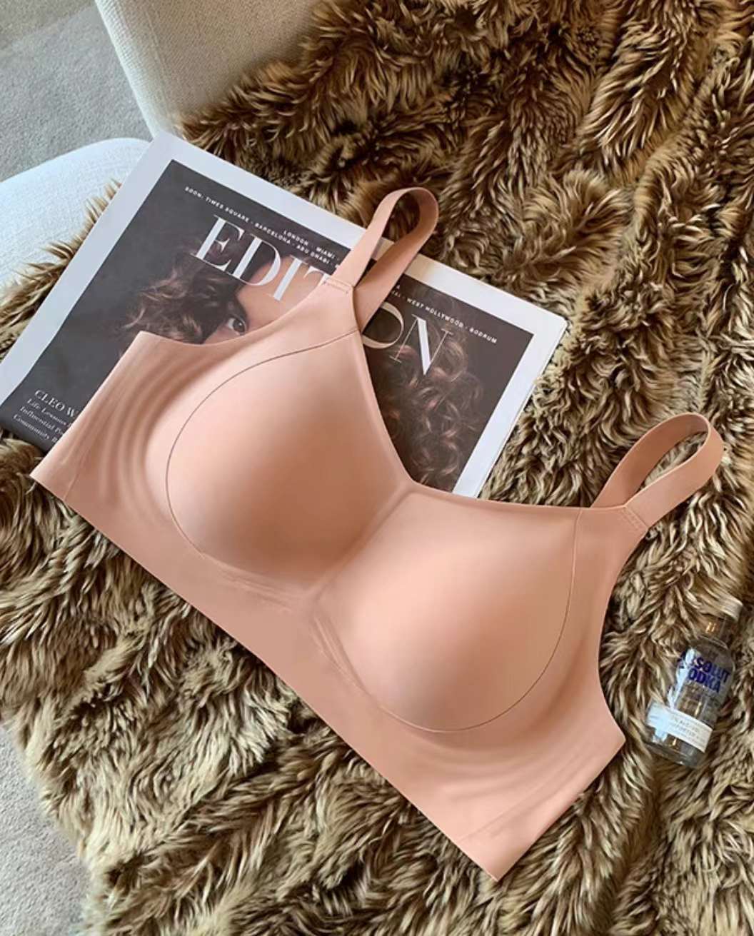 새로운 원활한 속옷 여성의 얇은 큰 가슴 작은 젤리 부드러운 지원 제로-센스 피부 친화적 인 무선 사이드 브라스토어 가기