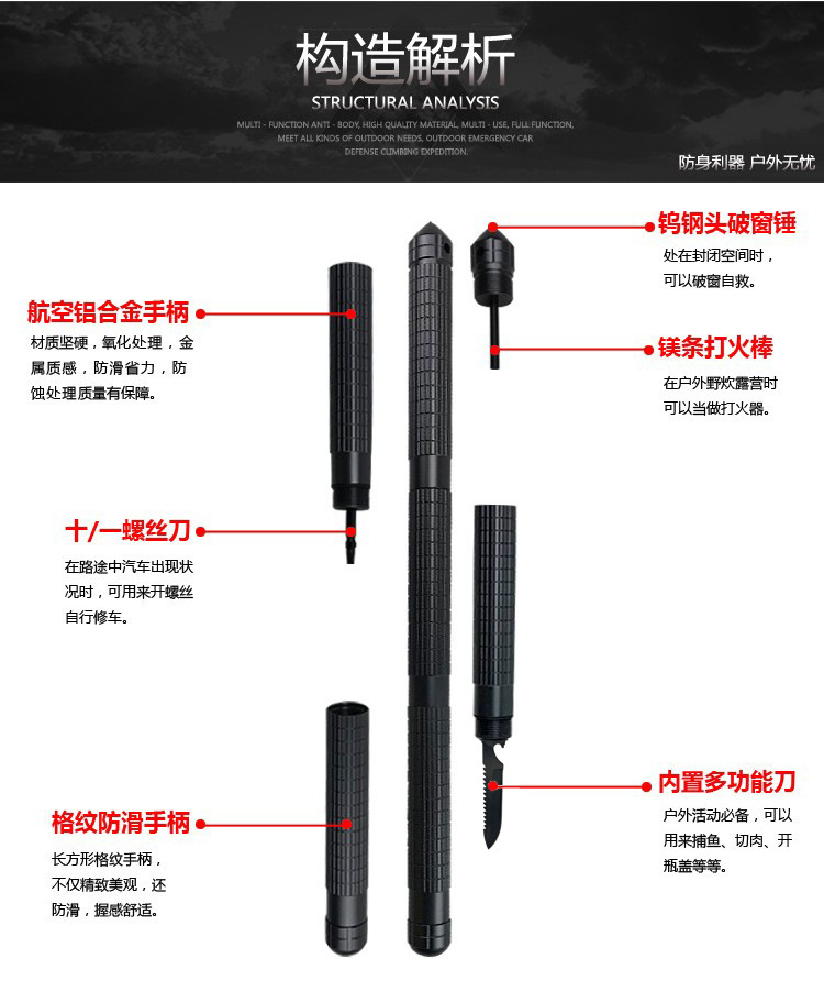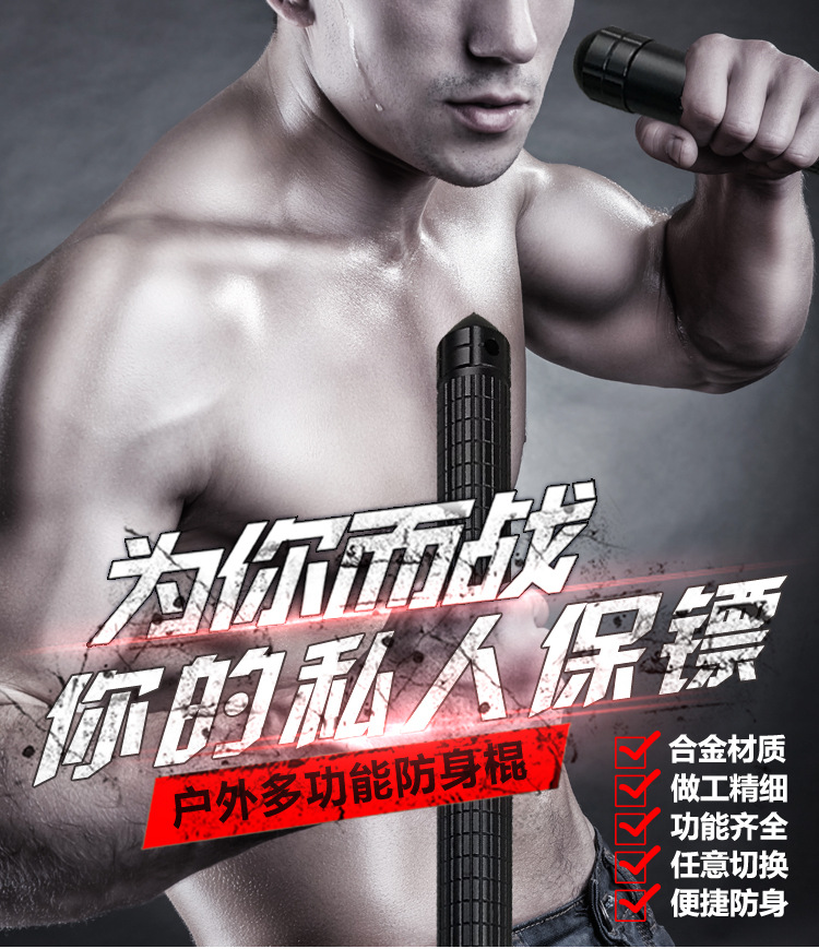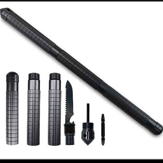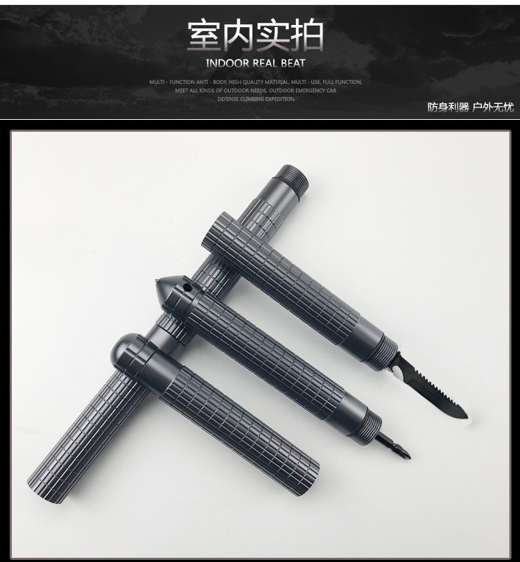 다기능 자기 방어 스틱 알루미늄 합금 3 섹션 스트레이트 핸들 클라이밍 스틱 워킹 스틱 걷는 야외 용품 공장 판매스토어 가기
