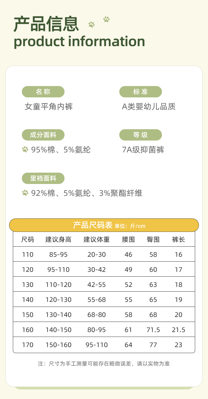 여아용 사각팬티 순면 7A 항균 A급 중대형 아동 학생용 비패드 어린이용
