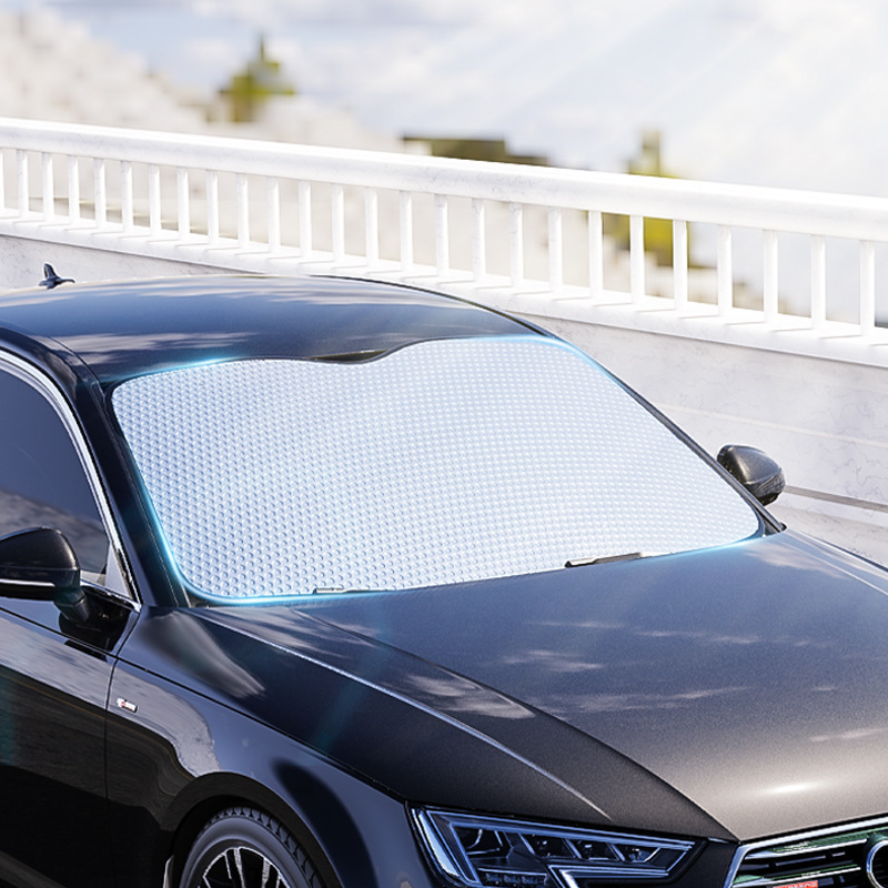 题外话:店主自己使用前挡基本不用吸盘,因为确实够厚,只要打开前挡下面撑到仪表台,左右用遮阳板翻下夹住立即搞定,等下上车时收纳也会快很多,夏天随便动动都是一身汗啊!