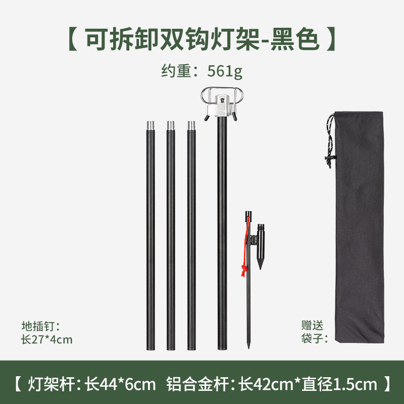 야외 탈착식 더블 후크 램프 홀더 휴대용 접이식 더블 헤드 조명 폴 캠핑 램프 후크 걸이