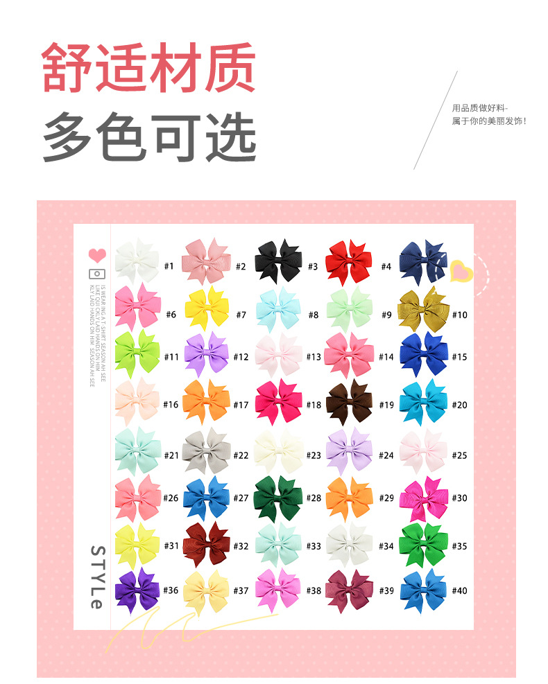 【名称】40色亚马逊外贸手工宝宝燕尾六角结罗纹缎带蝴蝶结发夹发饰儿童