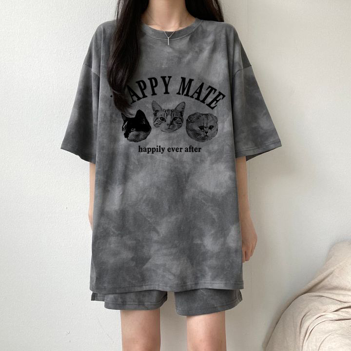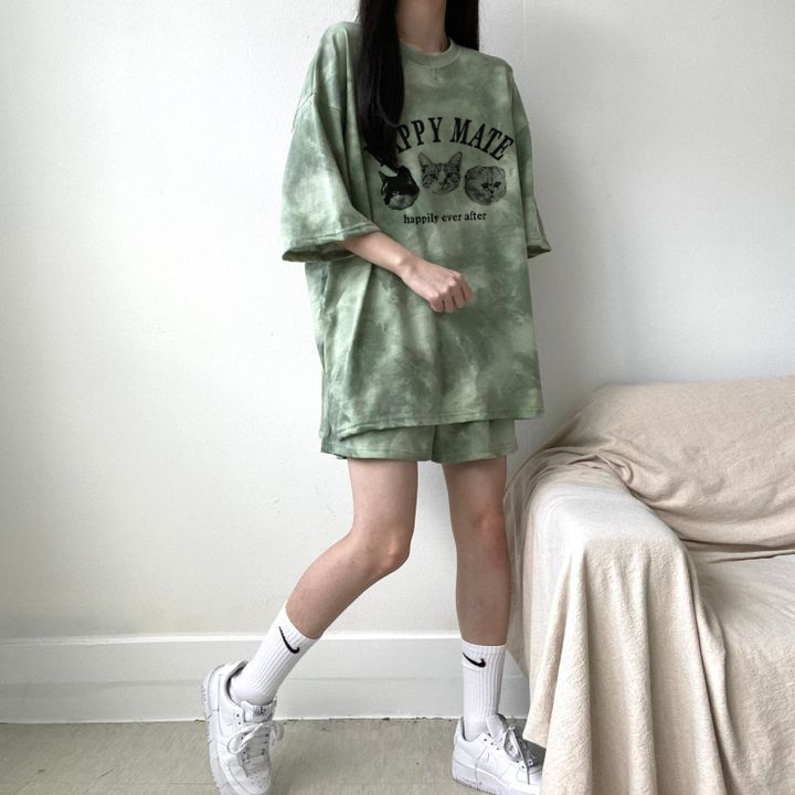 반팔 반바지 투피스 대외 무역 레저 스포츠 세트 여성 여름 2023 새로운 슬리밍 탑 플러스 사이즈 뚱뚱한 남자스토어 가기