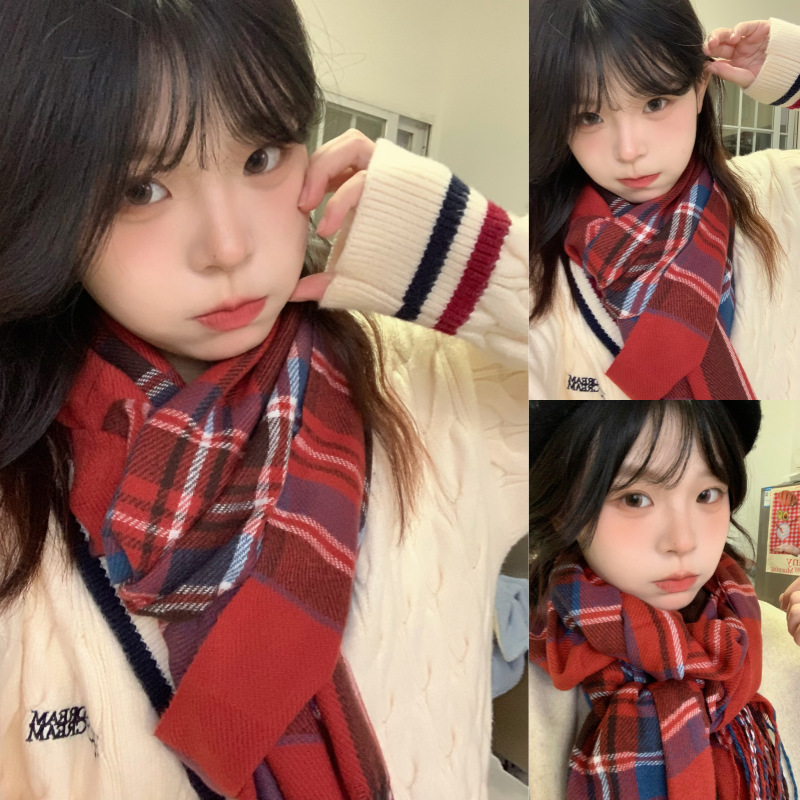 캐시미어 격자 무늬 따뜻한 커플 학생 올 매치 JK 유니폼 한국서 일본소녀 스카프 겨울 목도리스토어 가기