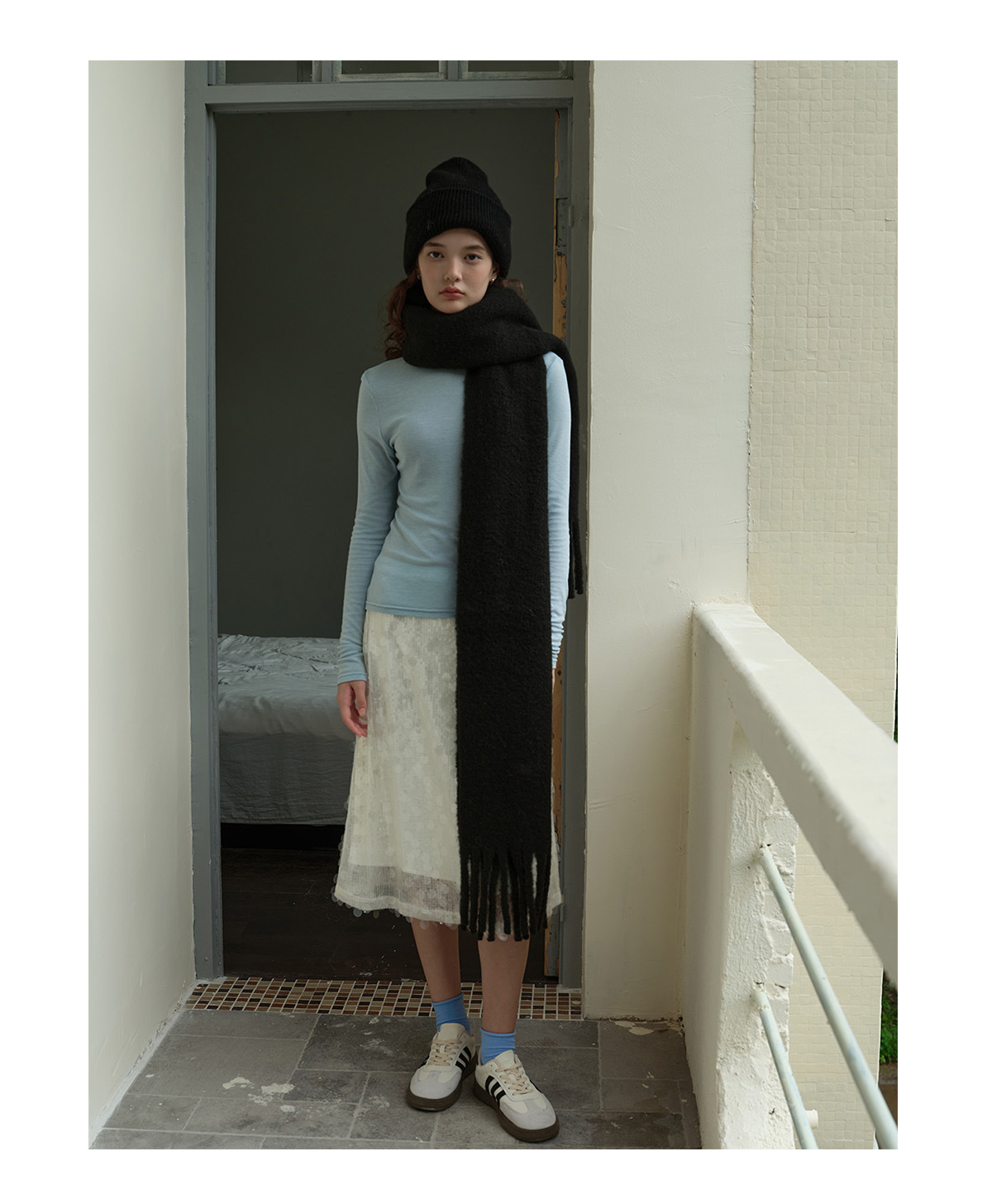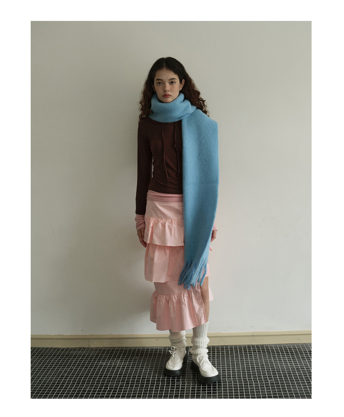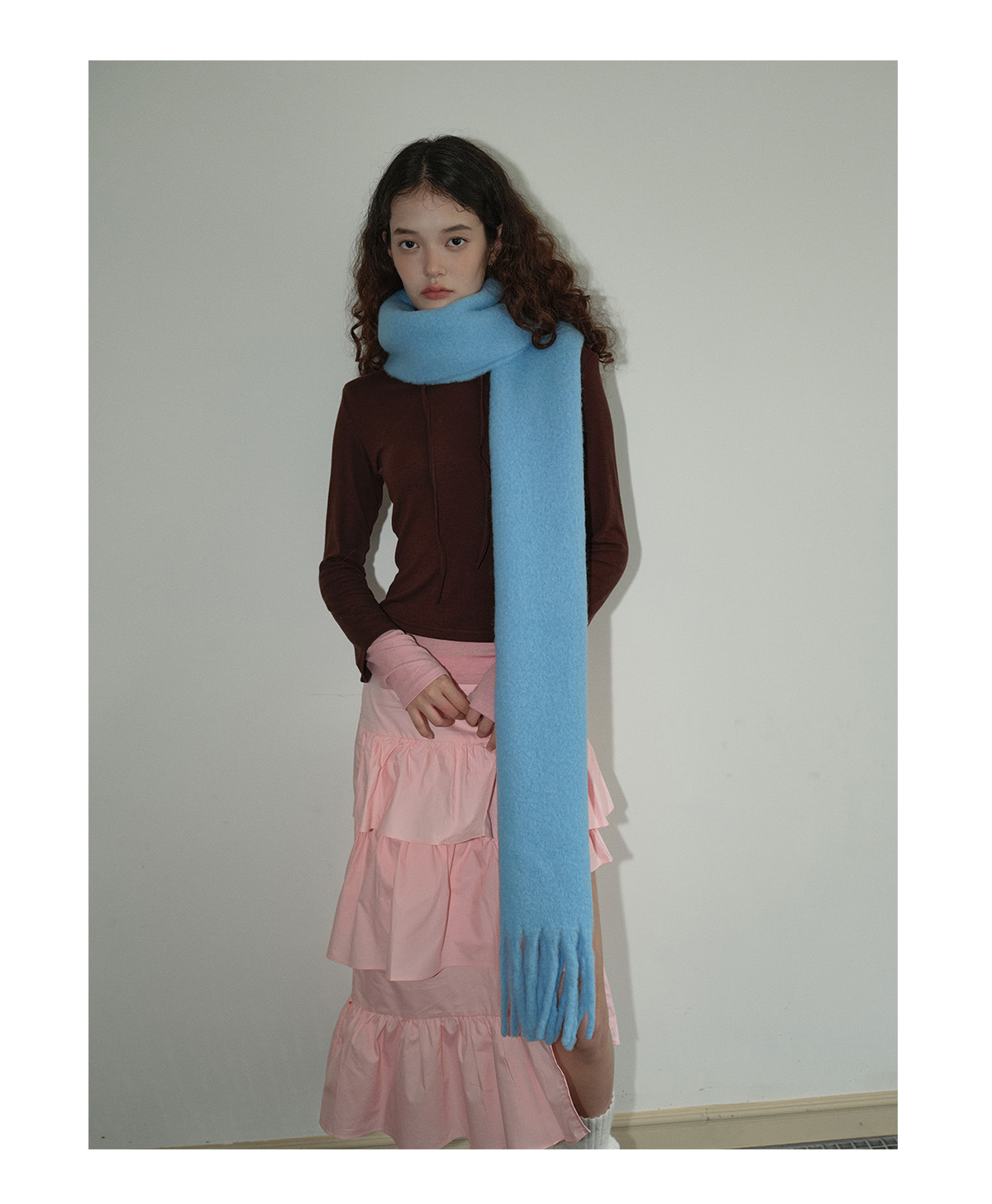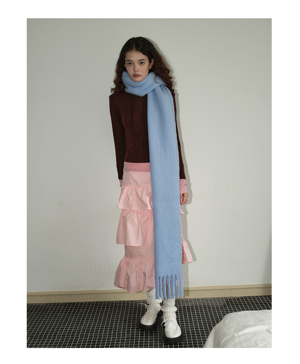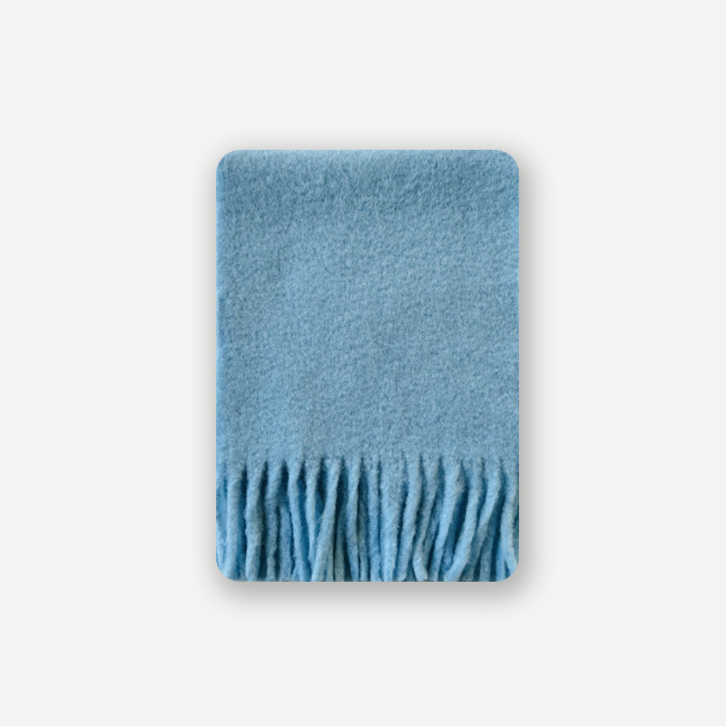 겨울 분위기의 아이슬란드 블루 소프트 스카프 여성용 40 울 글레이셔 블루 솔리드 컬러 스카프가 포함된 자체 제작 방적사