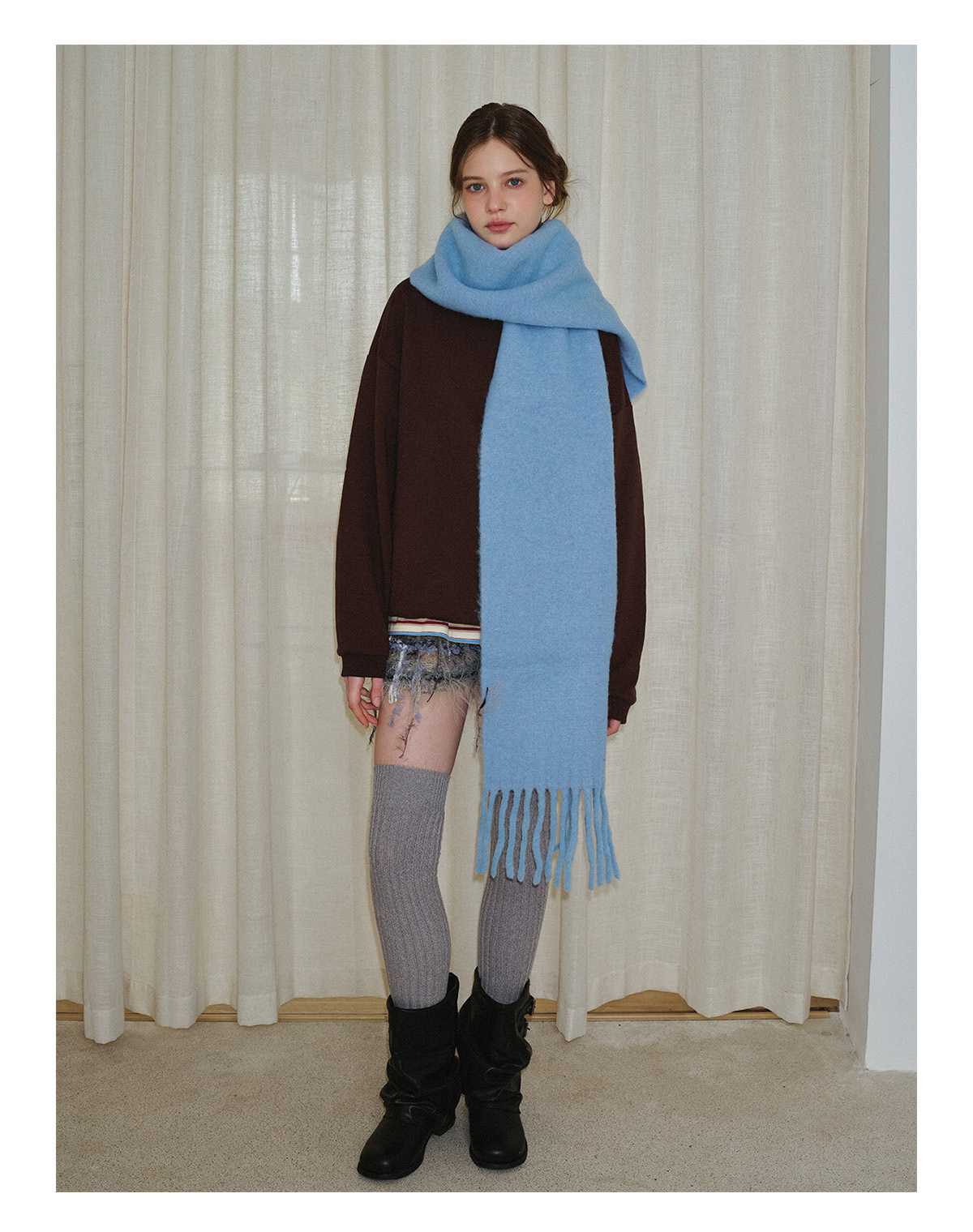 겨울 분위기의 아이슬란드 블루 소프트 스카프 여성용 40 울 글레이셔 블루 솔리드 컬러 스카프가 포함된 자체 제작 방적사스토어 가기