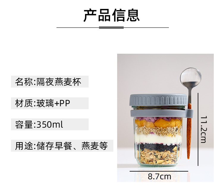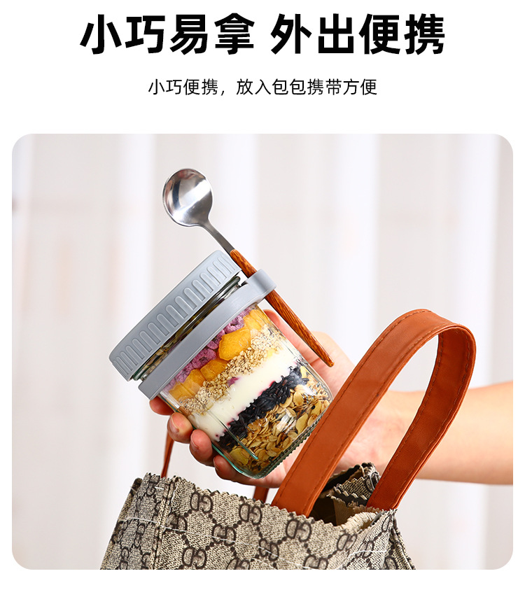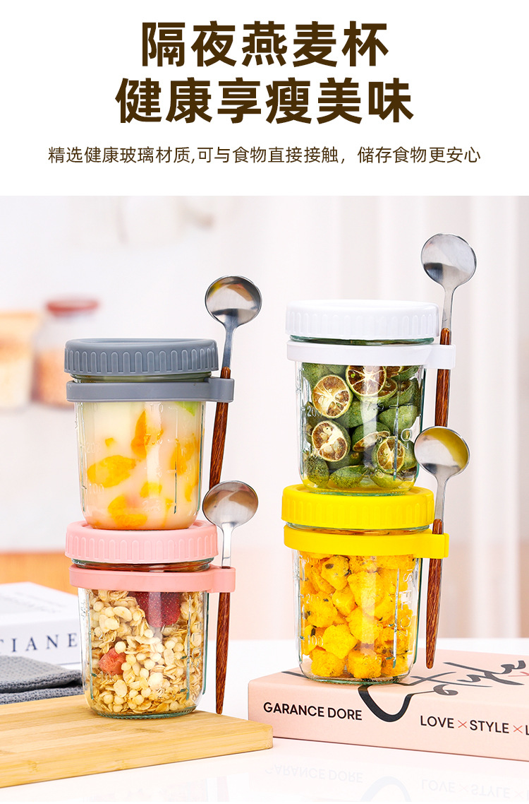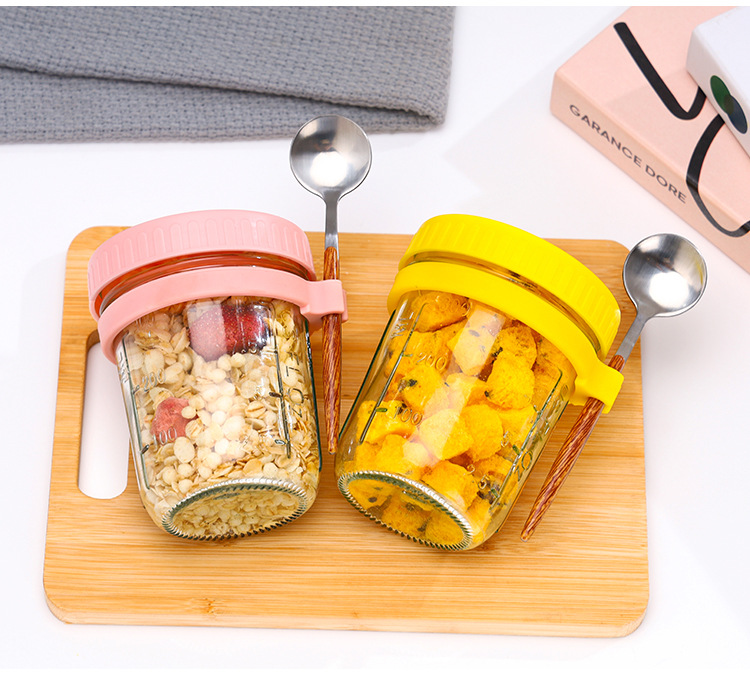 오버나이트 오트밀 컵, 휴대용 요구르트 컵, 아침 식사 컵, 걸이형 스푼, 고급스러운 유리 밀봉 용기, 오트밀 밀크 샐러드 컵