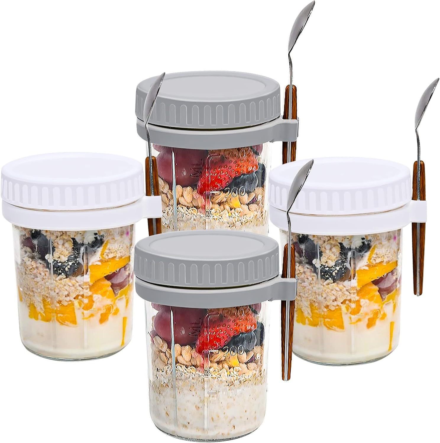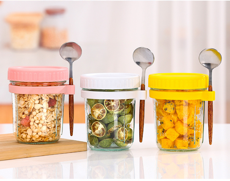 오버나이트 오트밀 컵, 휴대용 요구르트 컵, 아침 식사 컵, 걸이형 스푼, 고급스러운 유리 밀봉 용기, 오트밀 밀크 샐러드 컵스토어 가기