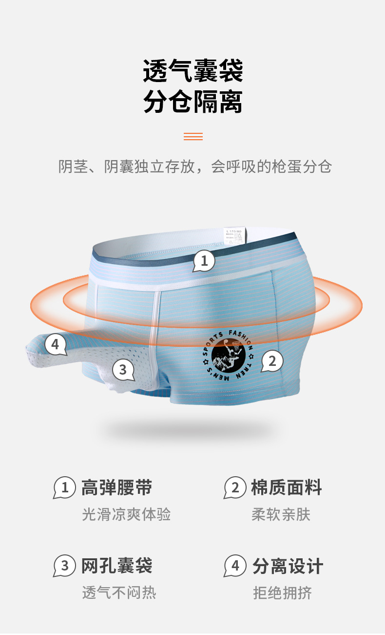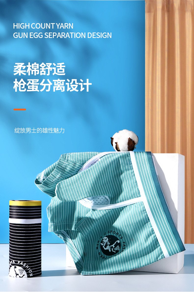 Yanxuan.com에서 엄선한 남성 속옷, 순면 코끼리코끼리 팬티, 통기성과 패셔너블한 스트라이프, 총알 모양의 별도 사각팬티 도매스토어 가기