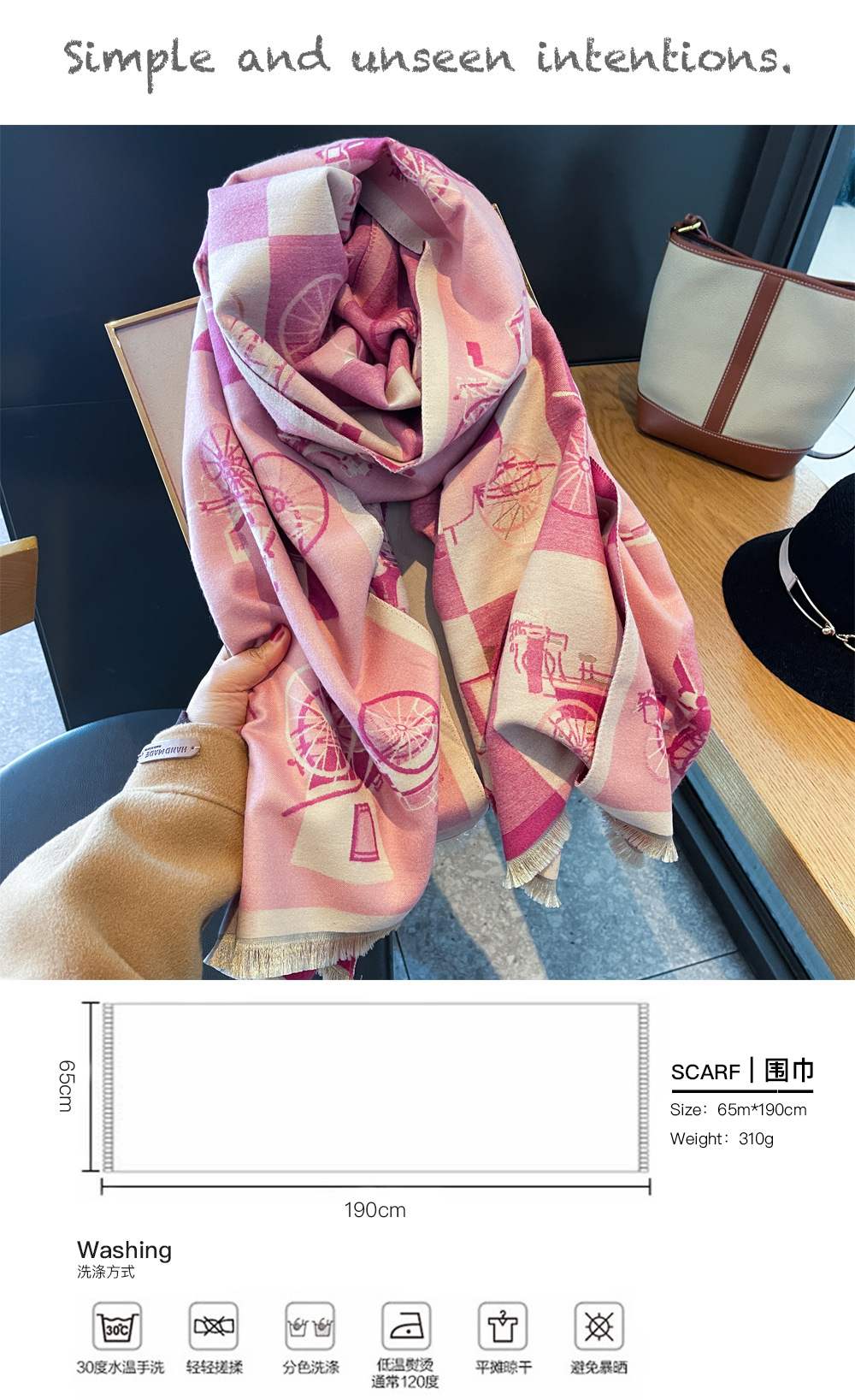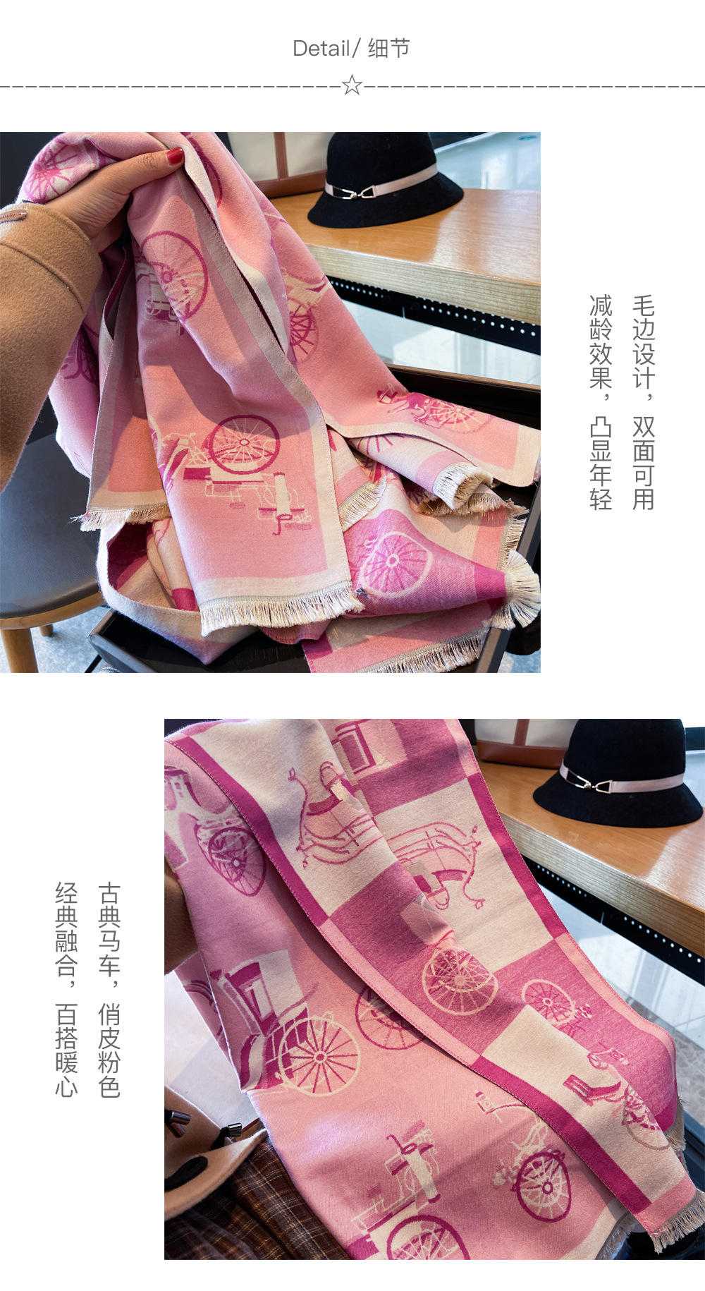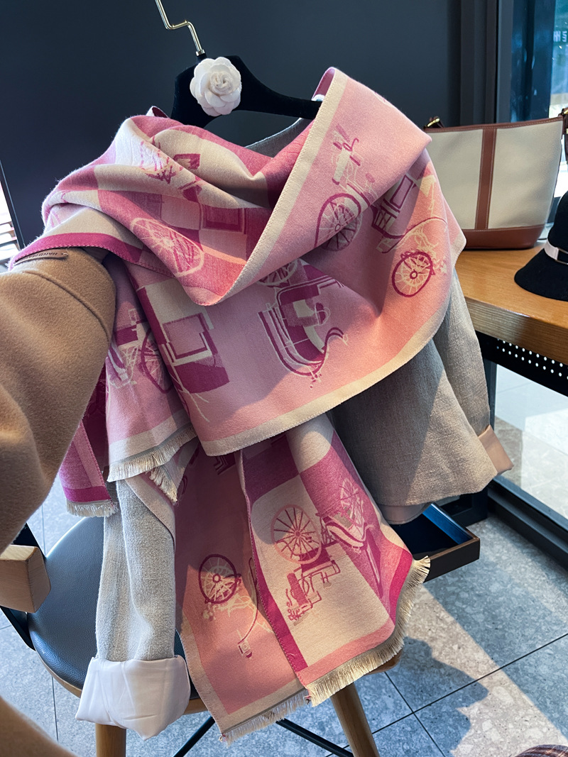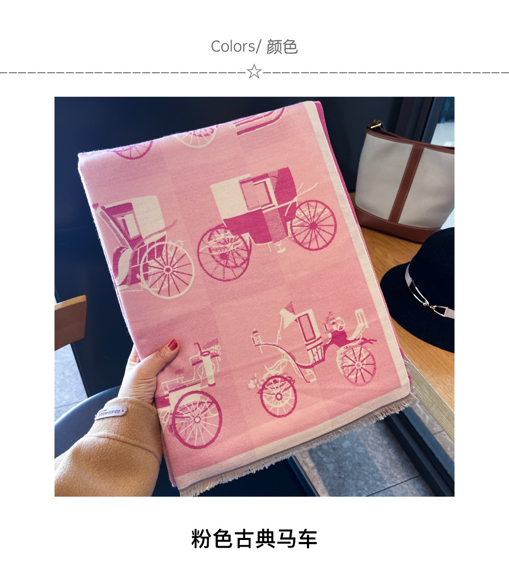 古典马车甜粉配色双面双色韩版百搭加厚仿羊绒围巾冬季女披肩围脖