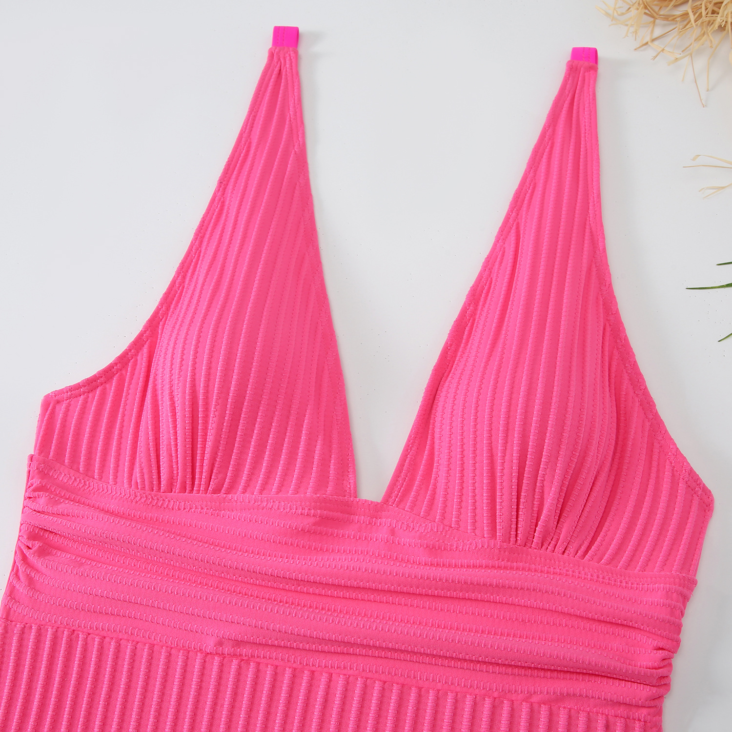 2024 아마존 새로운 단색 V 넥 스트랩 수영복 유럽과 미국의 섹시한 백리스 배꼽 커버 여성용 슬리밍 수영복