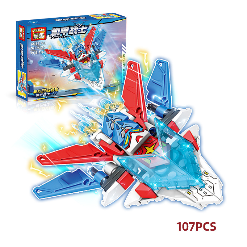 검은 말 블록 어린이 교육용 조립 메카 전사 세트 장난감 소년 선물 레고와 호환