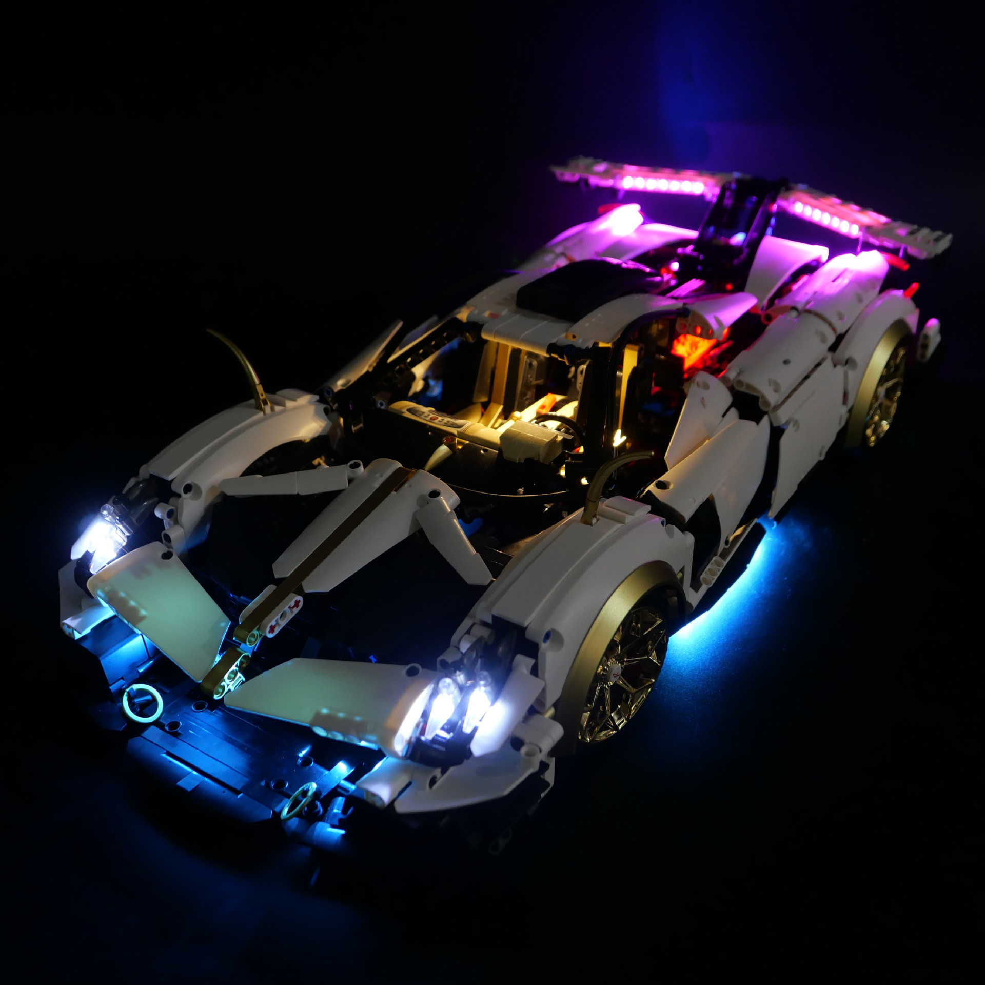 Lego Pagani 럭셔리카 로고 K 박스 기술 시리즈 LED 원격 제어 조명과 호환되는 DIY 빌딩 블록 조명스토어 가기