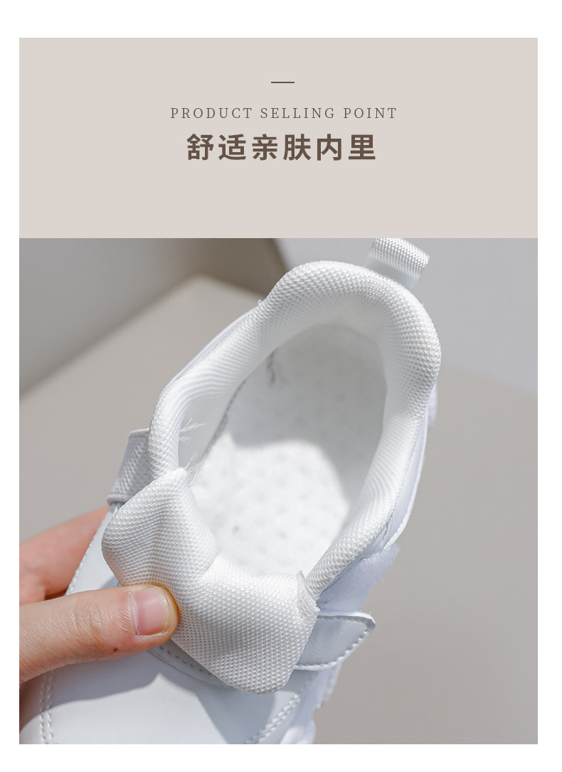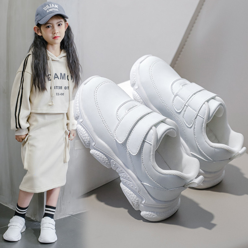 어린이 신발 소녀 흰색 신발 봄 2024 새로운 토레 신발 초등학생을위한 어린이 가죽 흰색 운동화