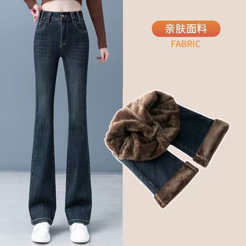 캐시미어 스키니 청바지 여성의 가을과 겨울 탄성 높은 허리 플러스 사이즈 여성 바지 기모 두꺼운 말굽 플레어 바지