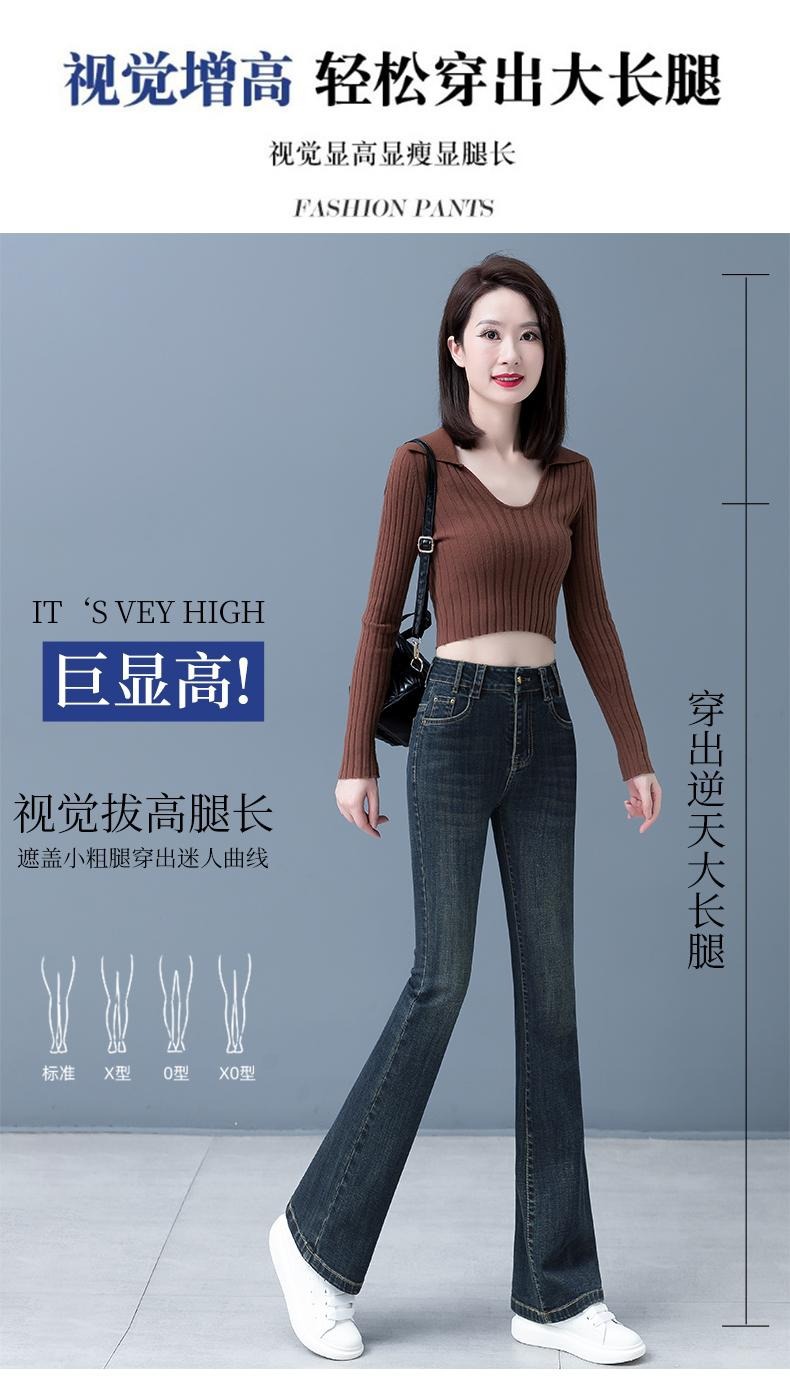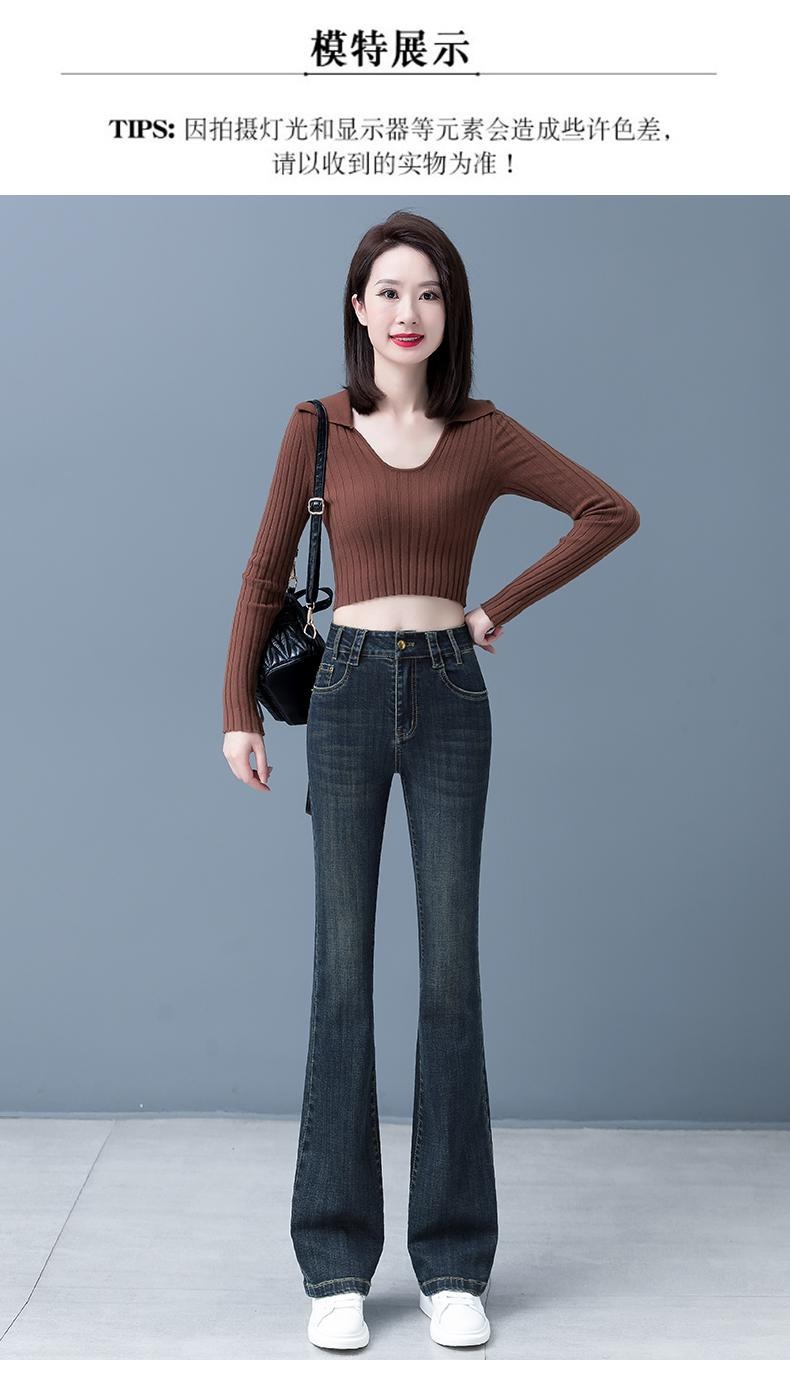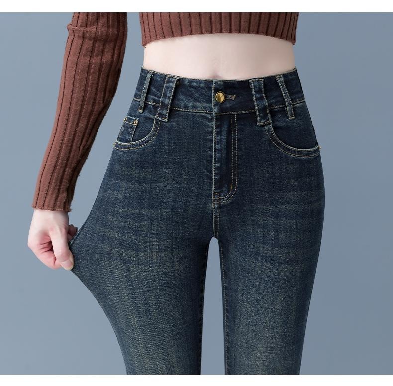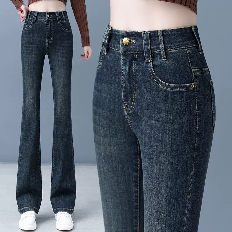 캐시미어 스키니 청바지 여성의 가을과 겨울 탄성 높은 허리 플러스 사이즈 여성 바지 기모 두꺼운 말굽 플레어 바지스토어 가기