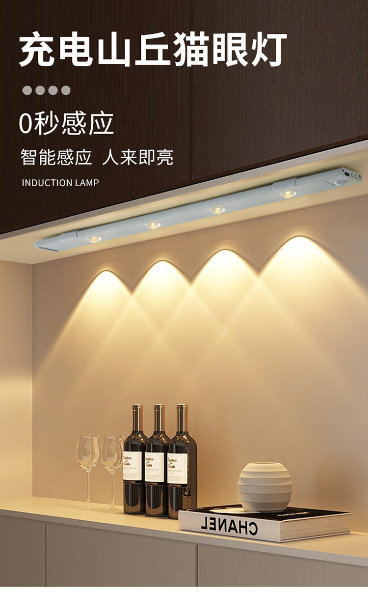 스마트 led 인체 센서 빛 초박형 고양이 눈 언덕 라이트 바 충전식 셀프 접착 옷장 와인 캐비닛 캐비닛 라이트 스트립