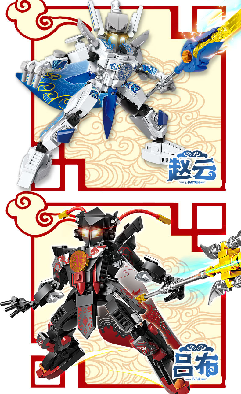 Le Yi 빌딩 블록 62022 삼국지 영웅 메카 관유 장페이 루부 로봇 보이 조립 장난감 모델