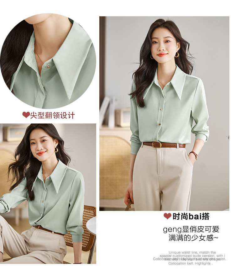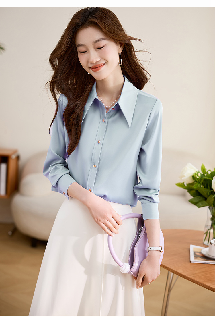 초봄 유행 서양식 OL 통근 슬리밍 간단한 광택 셔츠를 2024 여성을위한 보라색 아세테이트 새틴 긴팔 셔츠스토어 가기