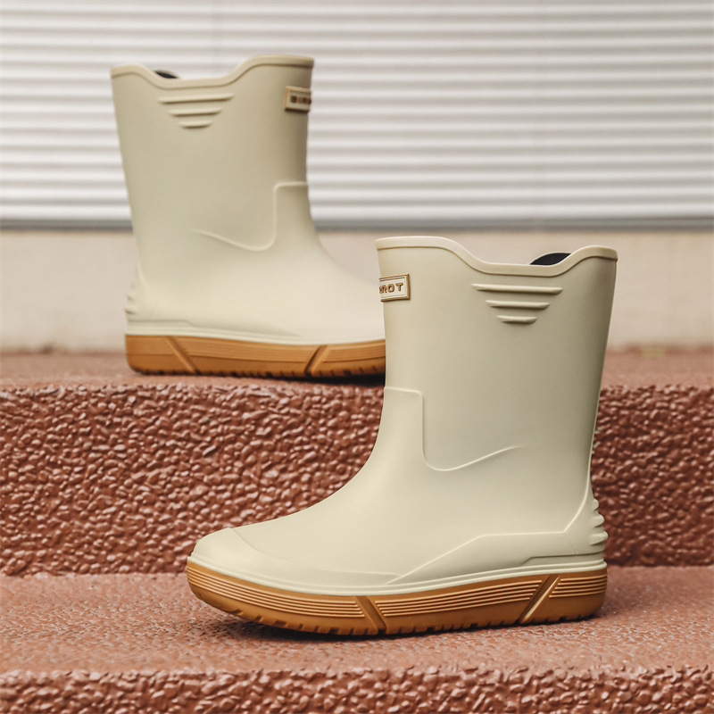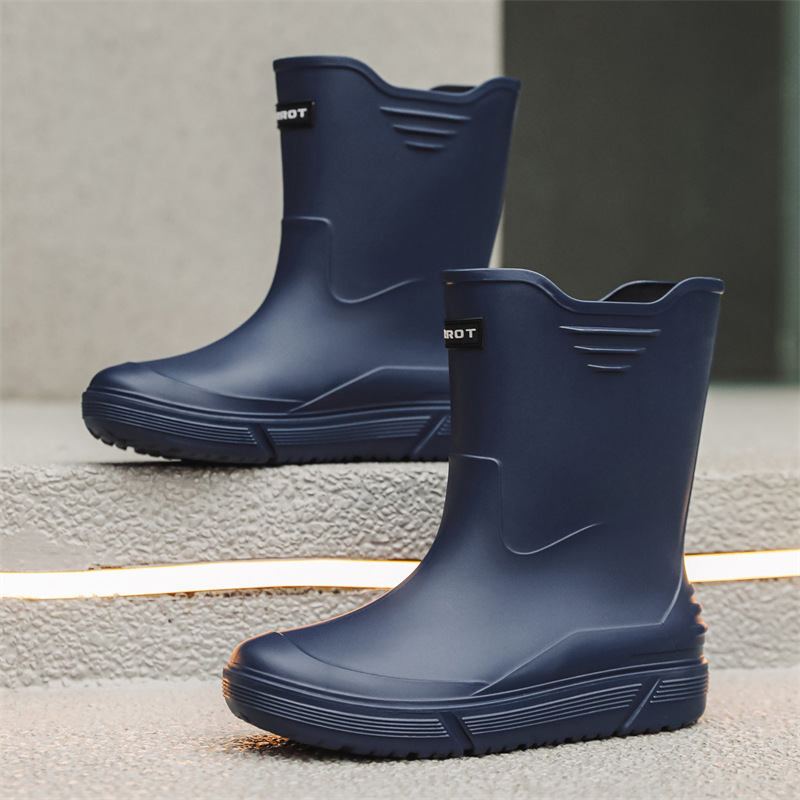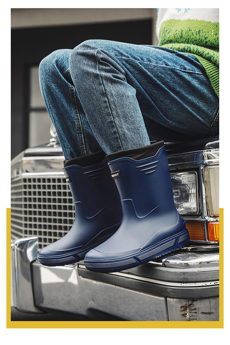 Rain Boots 남자의 새로운 중간 송아지 미끄럼 방지 방수 신발 패션 야외 워터 부츠 따뜻한 짧은 고무 신발 남성 배달 국경스토어 가기