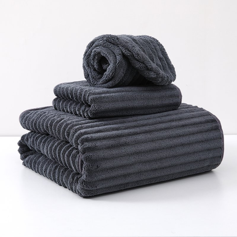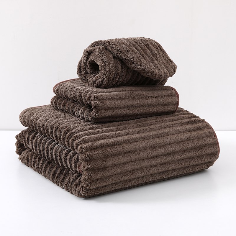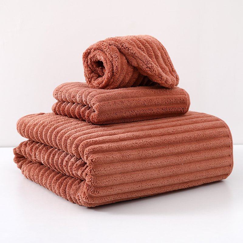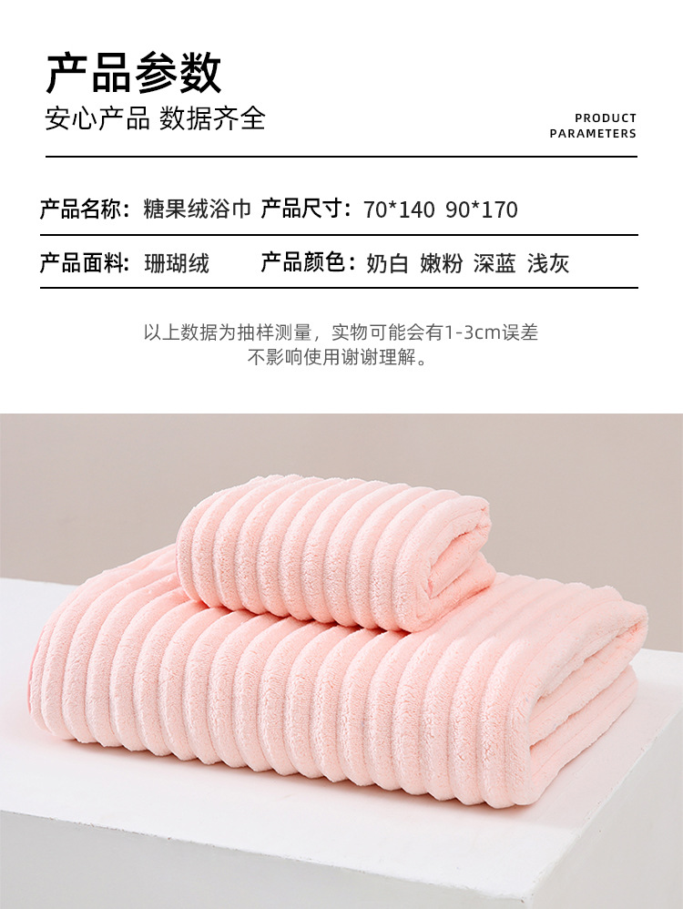 캔디 벨벳 대형 목욕 타월 산호 벨벳 워시 페이스 타월 3 피스 세트 웨이브 패턴 목욕 물 흡수성 빠른 건조 두꺼운 비치 타월