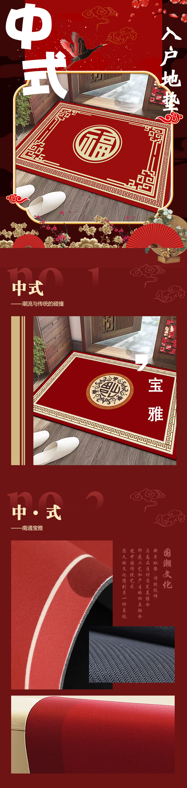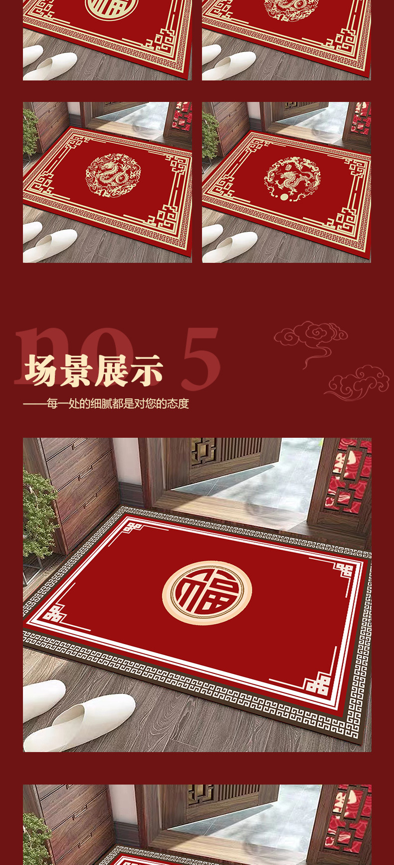 새로운 중국 가정용 Diatom 진흙 매트 레드 축제 문 매트는 흡수성 내마모성 새해 매트 절단 가능