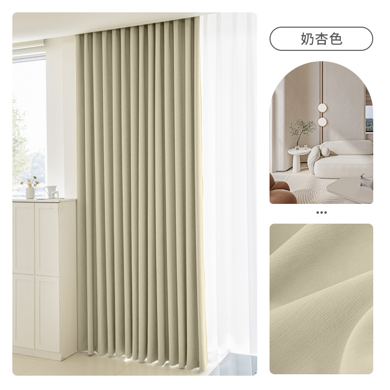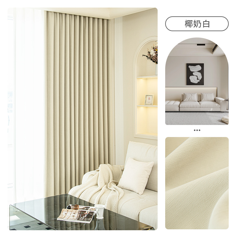 완전 암막 커튼, 매우 부드러운 셔닐, 모던하고 심플한 클라우드 벨벳, 고급 크림 스타일, 거실과 침실, 붉은기 없음