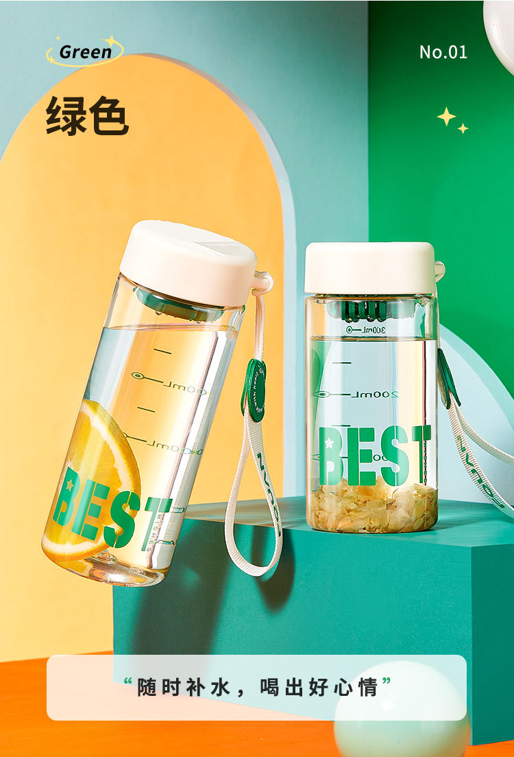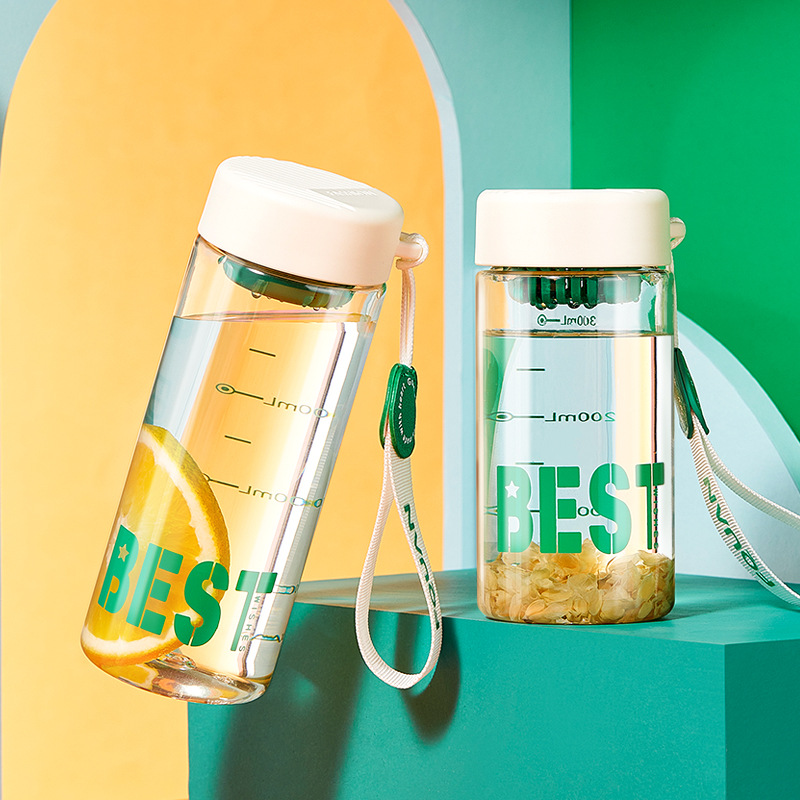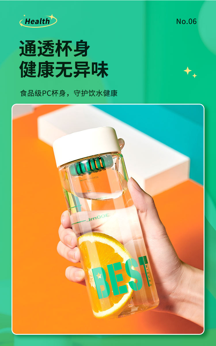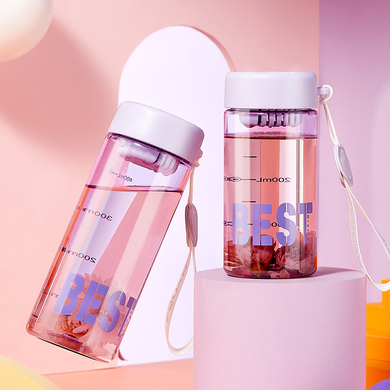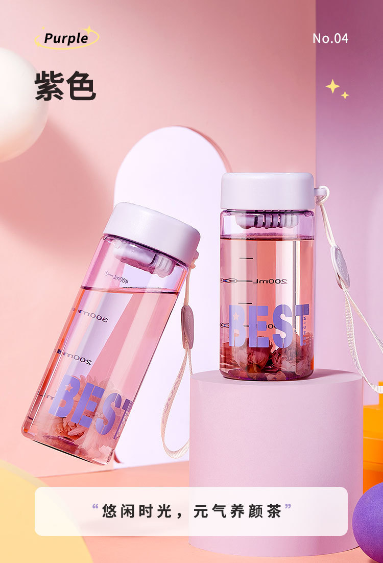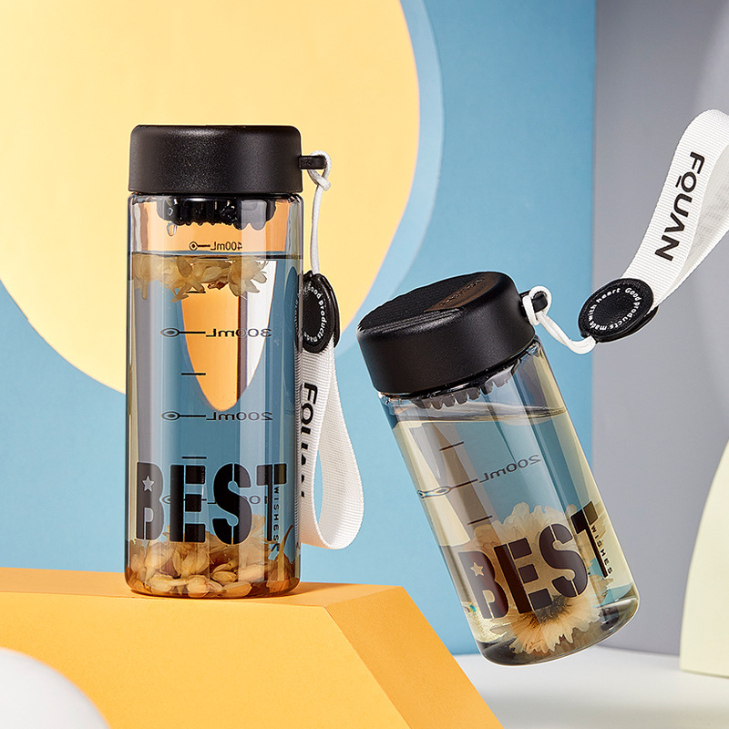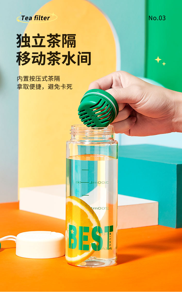 카비 동반 컵 휴대용 간단한 편리한 컵 필터 스크린 티 컵 투명 PC 플라스틱 컵 고온 저항