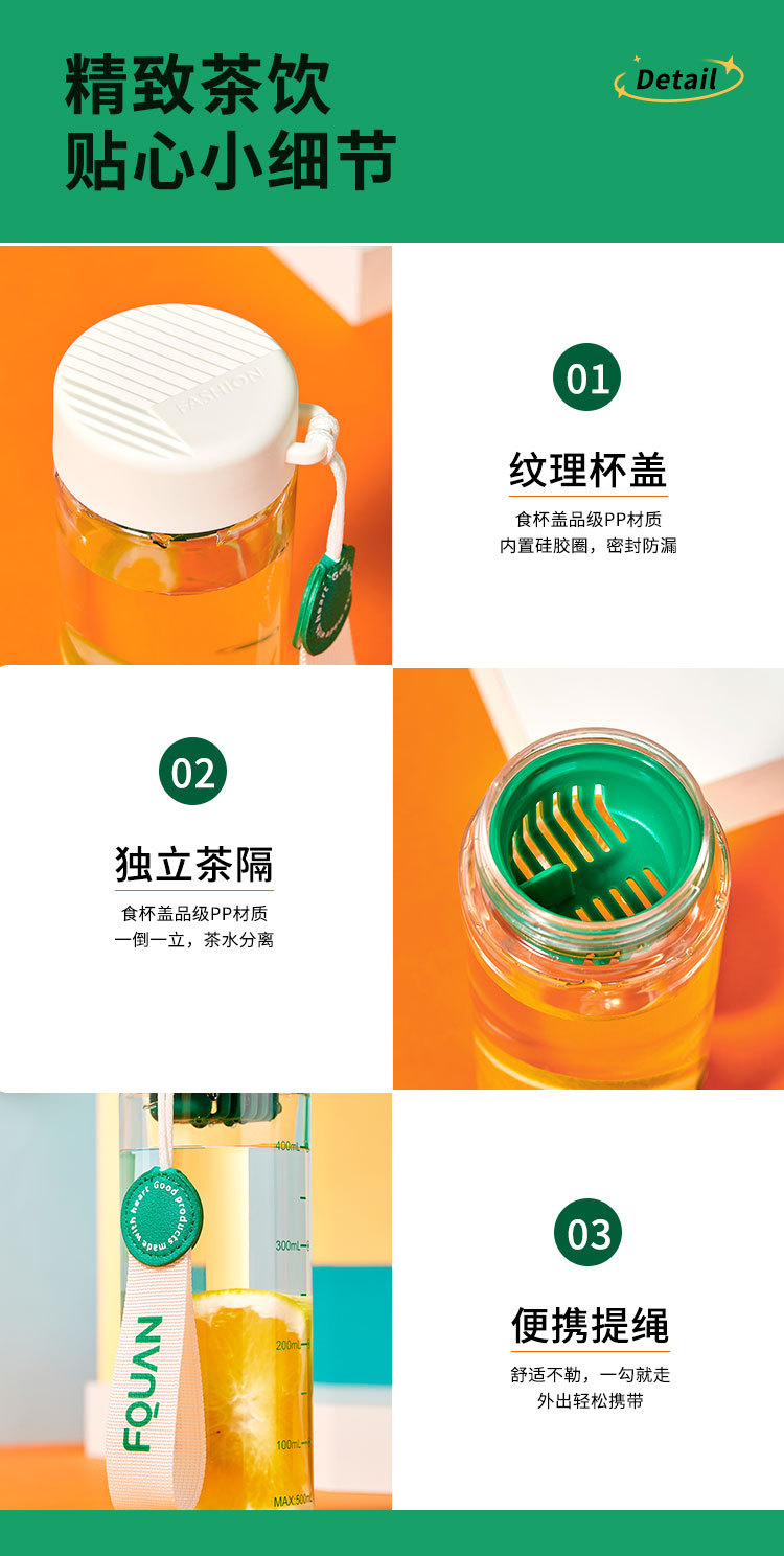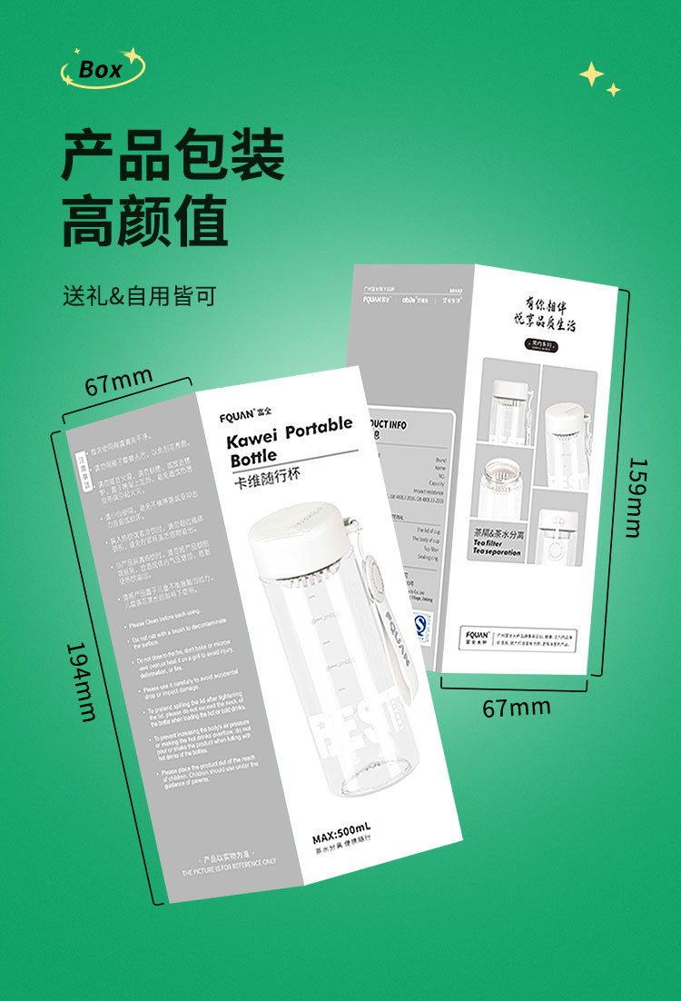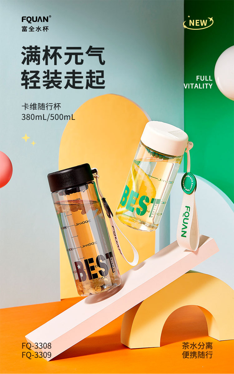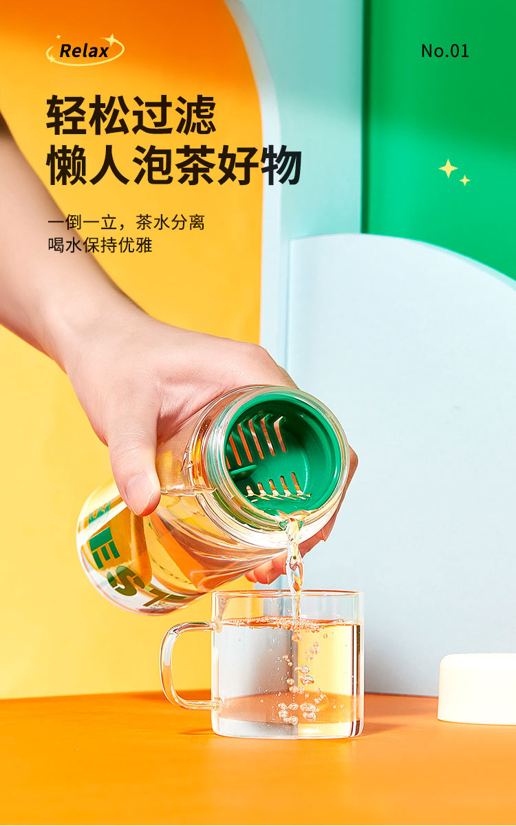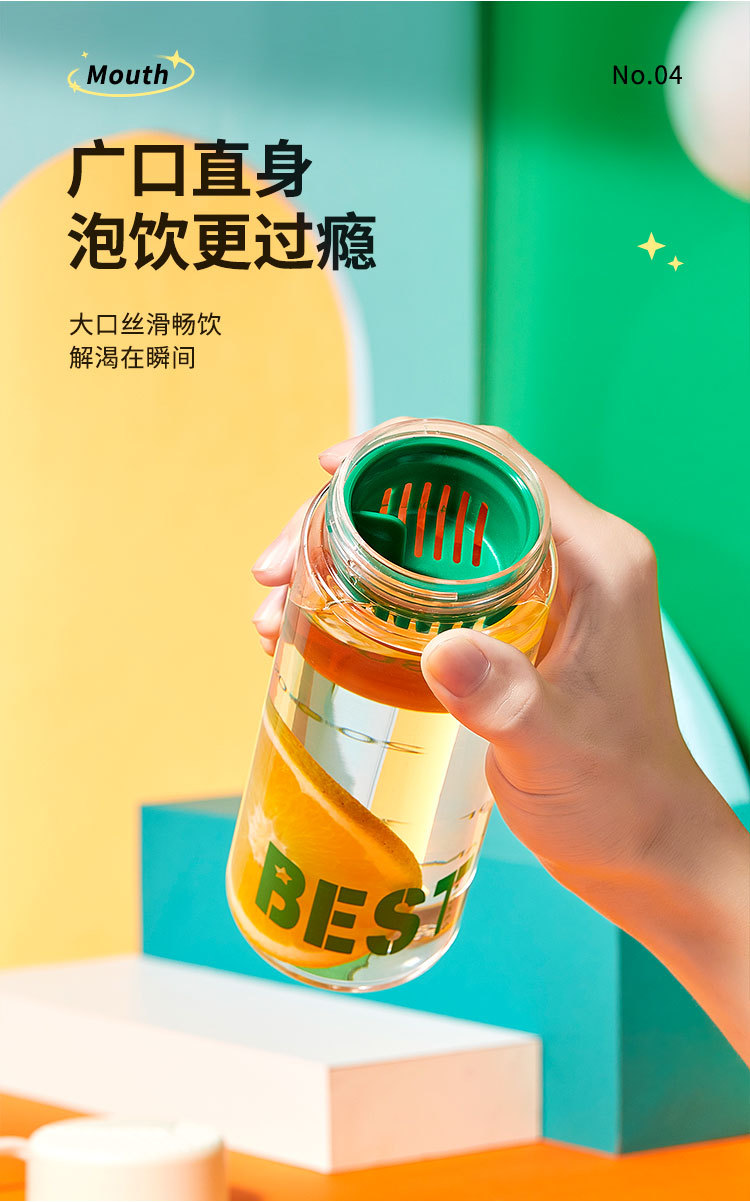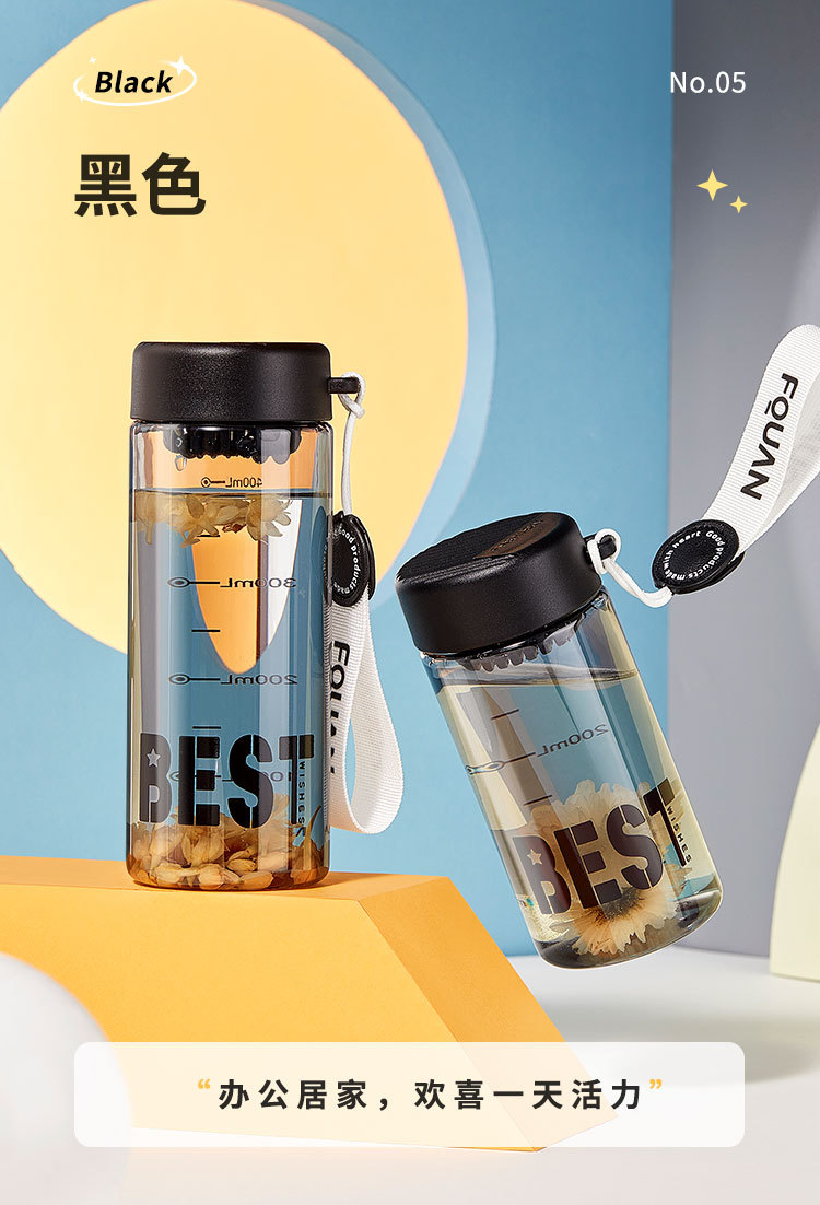 카비 동반 컵 휴대용 간단한 편리한 컵 필터 스크린 티 컵 투명 PC 플라스틱 컵 고온 저항