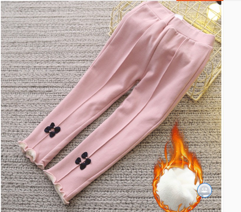 신상 여아용 기모 레깅스 가을 겨울 아동용 패션 바지 리본 장식 두꺼운 보온 아동 바지