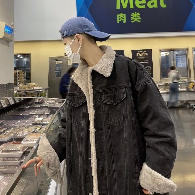 겨울 새로운 캐시미어 캐주얼 데님 코트 남성용 기모 두껍게 한 남성용 코트 한국식 느슨한 재킷 남성용 패션스토어 가기