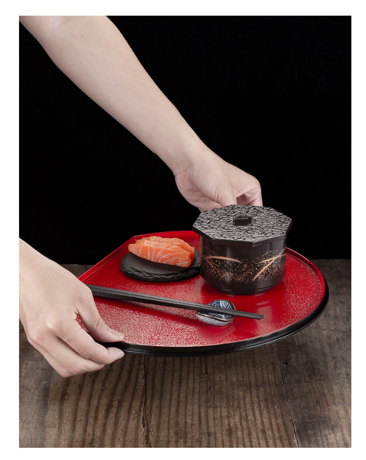 일본식 트레이 레드 블랙 래커웨어 스시 레스토랑 반원 서빙 하단 트레이 호텔 플라스틱 미끄럼 방지 플레이트스토어 가기