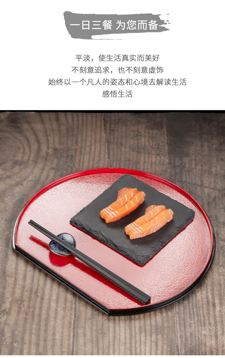 日式托盘红色黑色漆器寿司料理餐厅半圆上菜底托酒店塑料防滑盘子