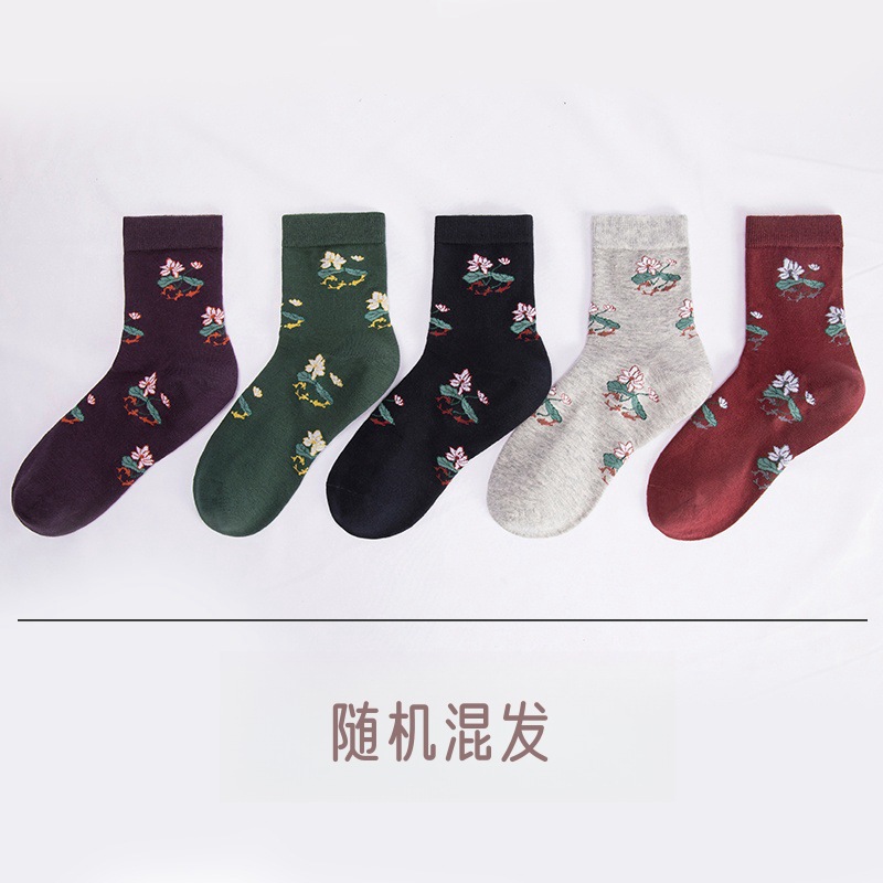 가을과 겨울 양말 여성의 어머니 양말 중반 송아지 양말 노인 할머니 여성 양말 탈취제 봄과 가을 사계절 넓은 입 자카드