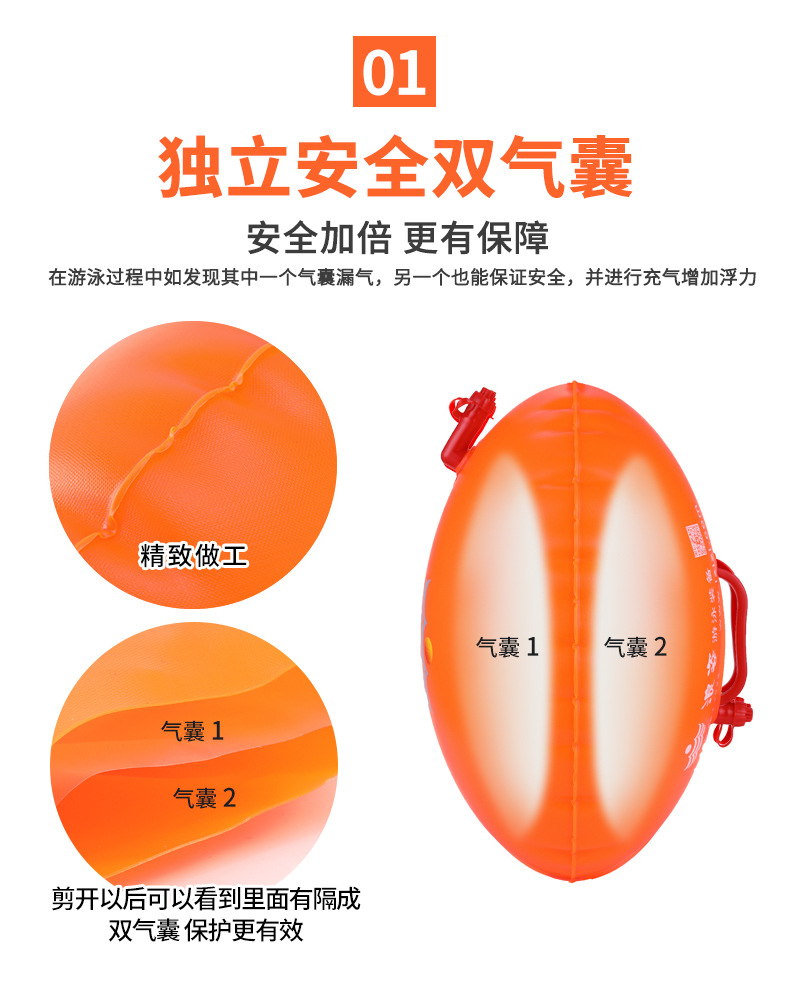 Langzi 수영 플로트 두꺼운 직물 내장 더블 에어백 성인 야외 스토커 수영 자가 구조 생존 장비