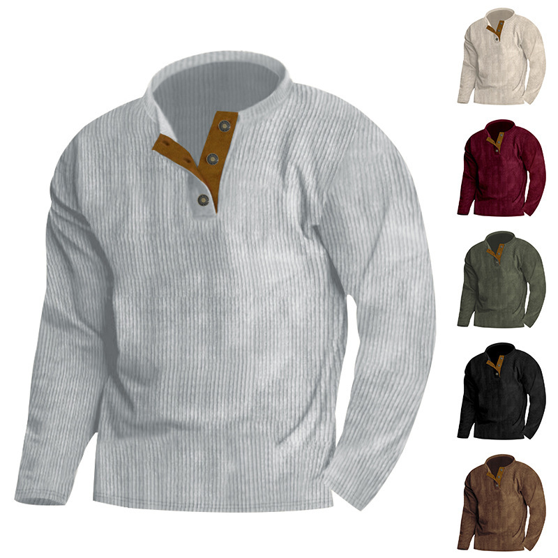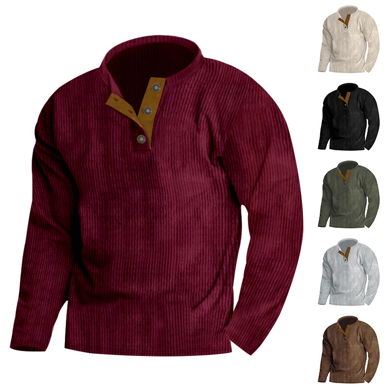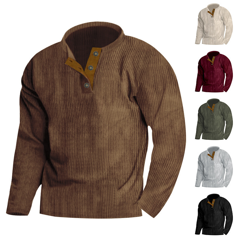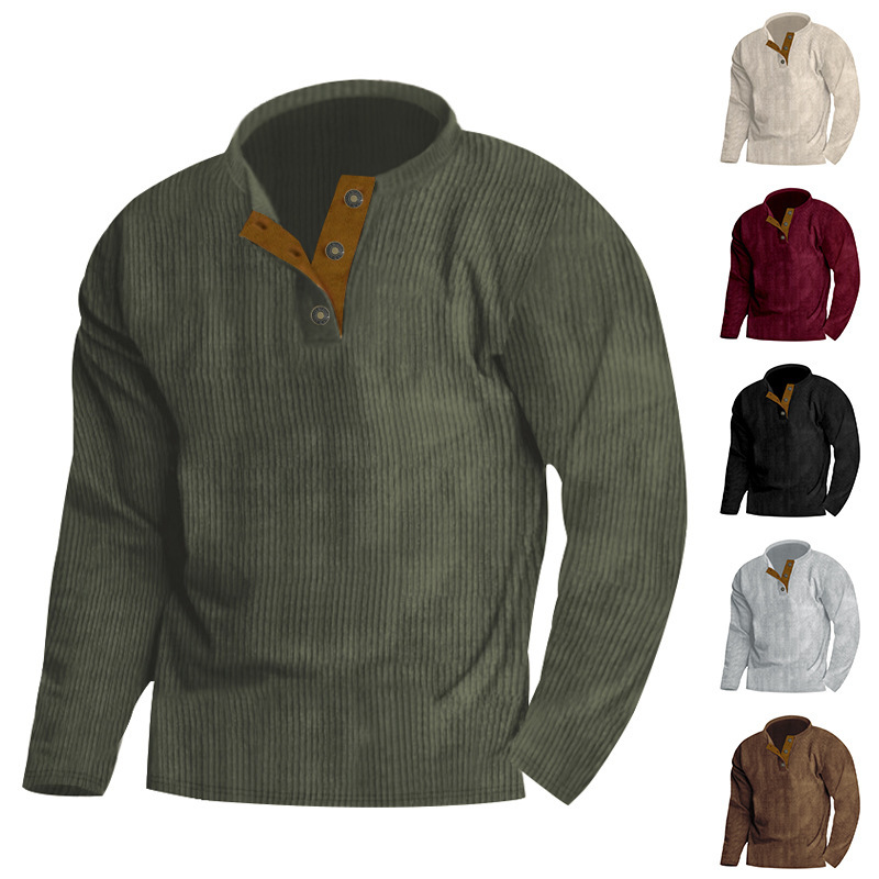 2024 봄과 가을 새로운 아마존 국경 핫 판매 남성 야외 코듀로이 캐주얼 라운드 넥 단색 긴 소매 스웨터