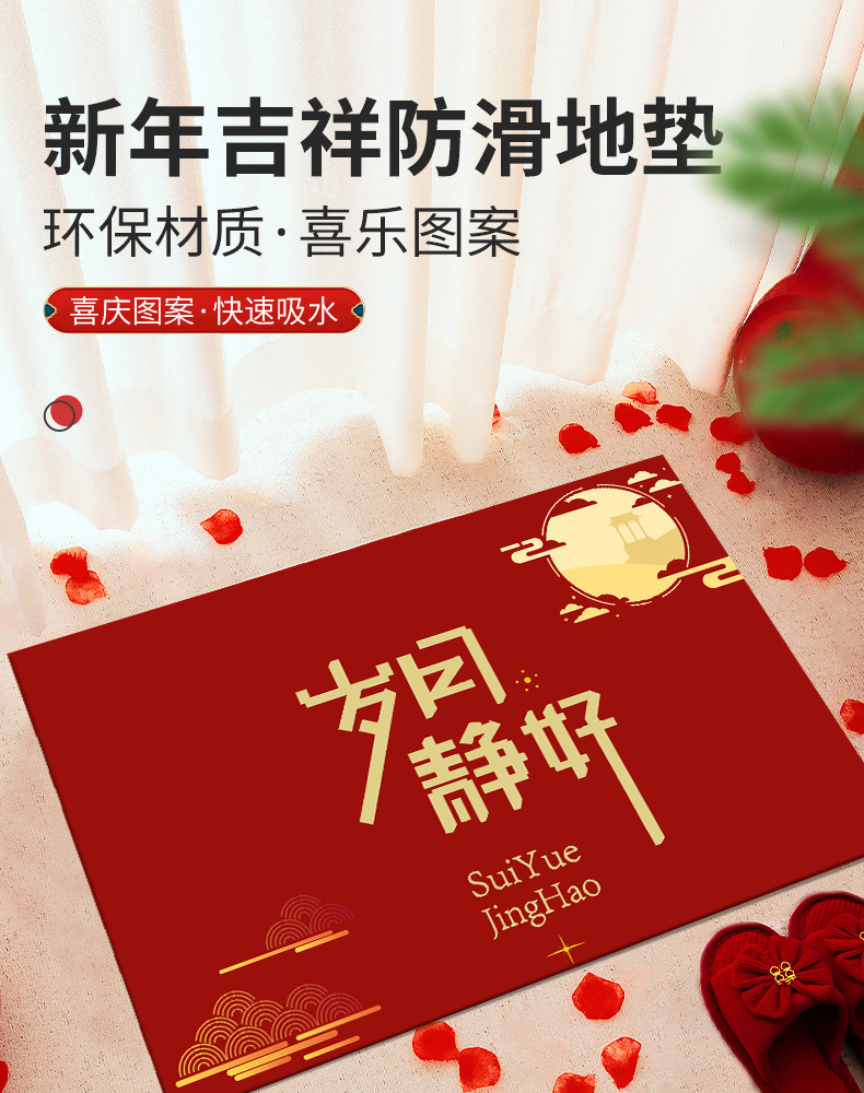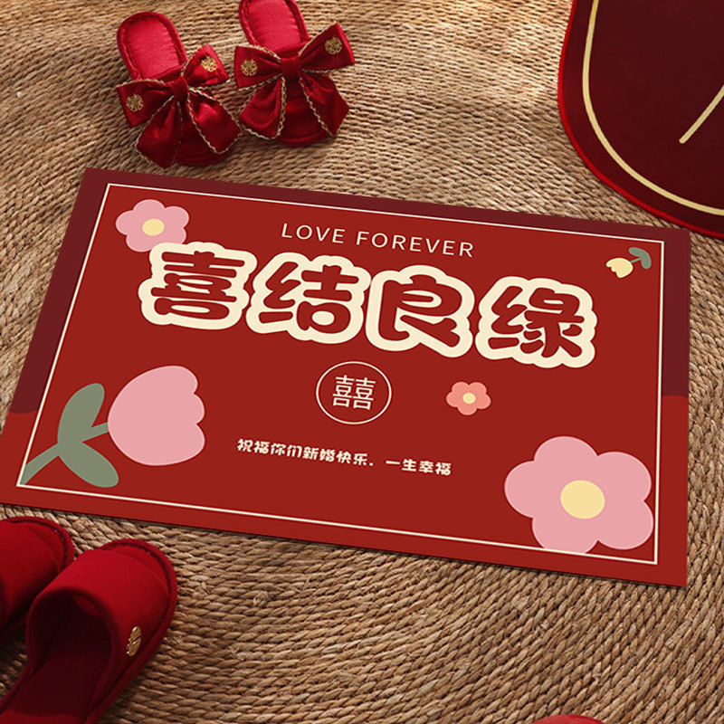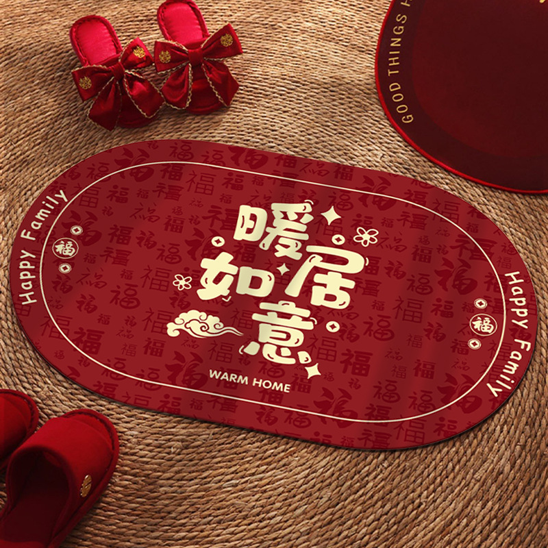 새로운 중국 스타일 빨간 바닥 매트 결혼 입구 발 매트 먼지 저항하는 흡수성 욕실 바닥 매트 집들이 안녕 문 매트