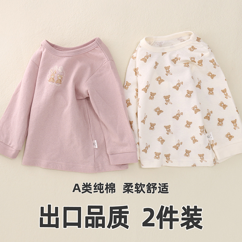 일본 가을과 겨울 둥근 목 어린이 긴팔 바닥 셔츠 소녀 베이비 탑 홈 착용 만화 한국 캐주얼 아동복