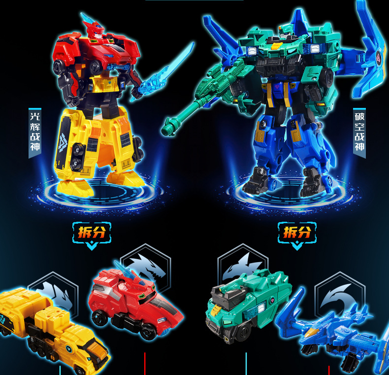 양자 팀의 공룡 수호자 영광스러운 변형 로봇 어린이 맞는 메카 재미있는 변화 인형 장난감스토어 가기