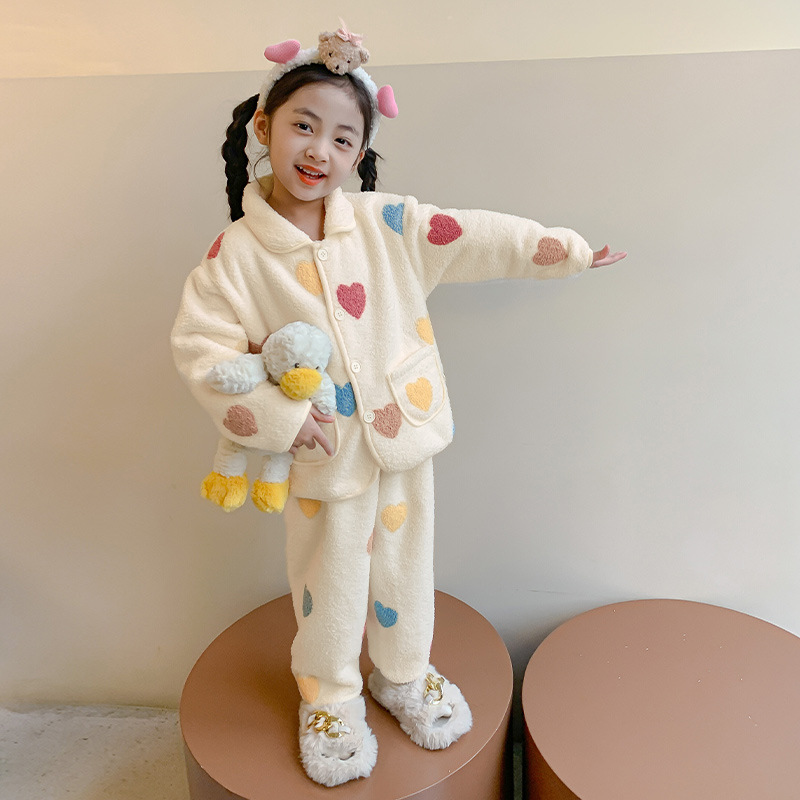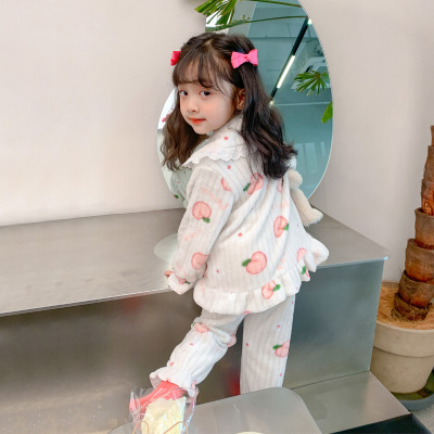 여아용 잠옷 가을 겨울용 플러스 벨벳 두꺼운 산호 벨벳 여아용 플란넬 아동용 겨울 홈웨어 세트
