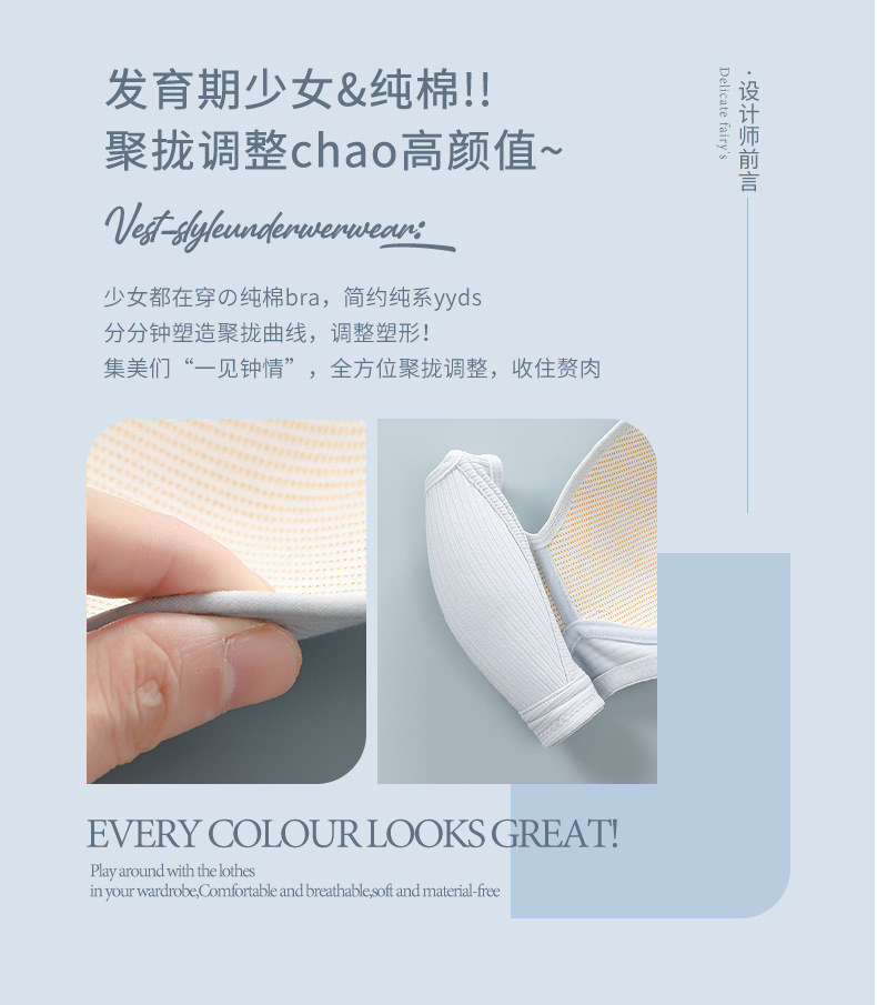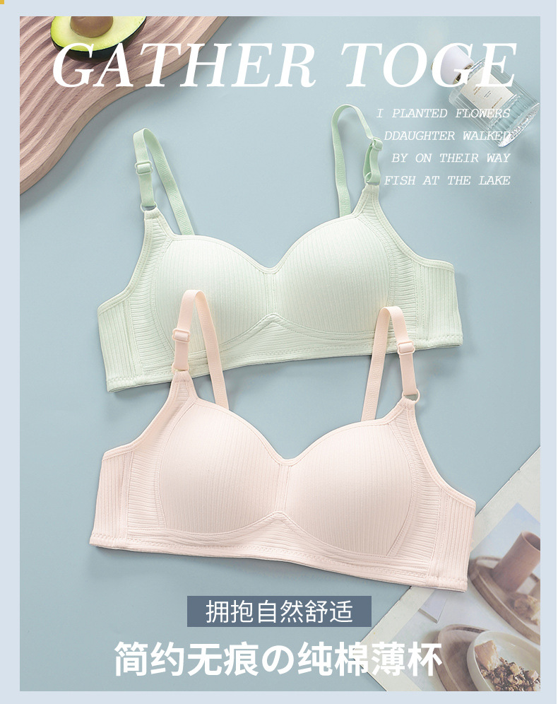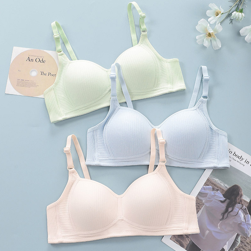 순수한 면화 소녀 속옷 스틸 링이없는 여성 작은 가슴 얇은 고등학생 발달 브라 스팟 도매스토어 가기
