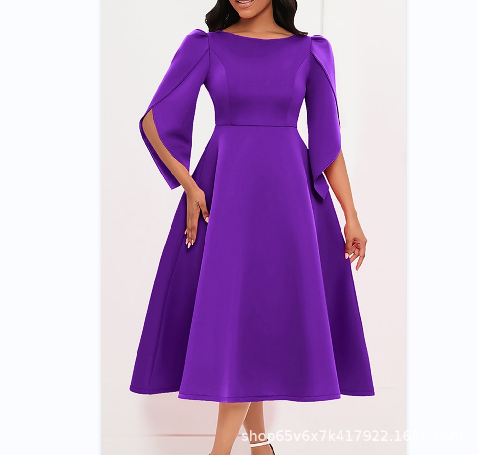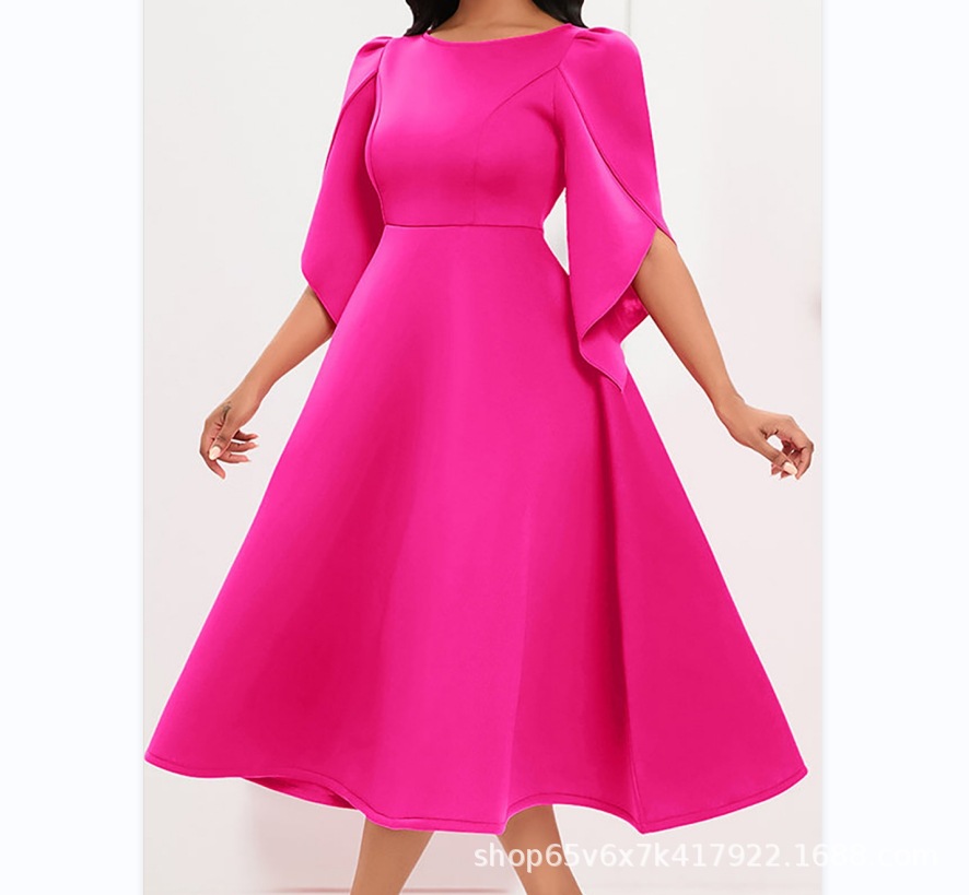 2024 국경 간 아마존 여성 의류 새로운 플러스 사이즈 슬림 유럽과 미국 독립 역 단색 기질 통근 원피스